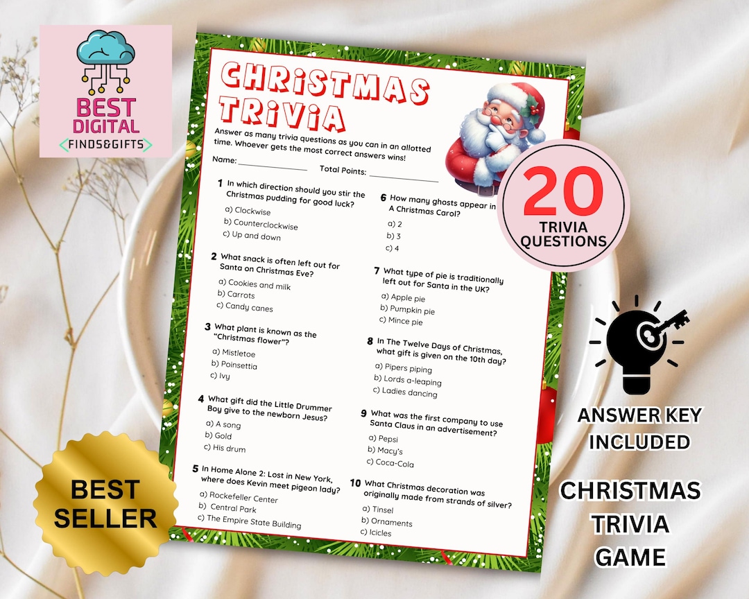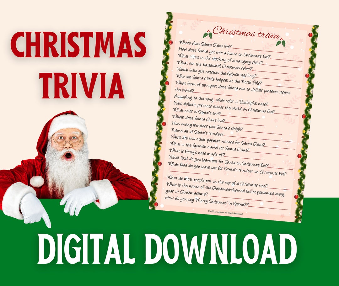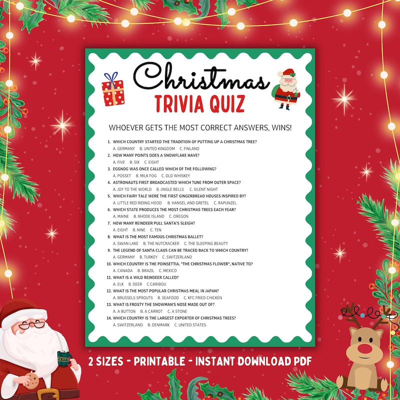 Printable Christmas Trivia Game Holiday Trivia Digital Download