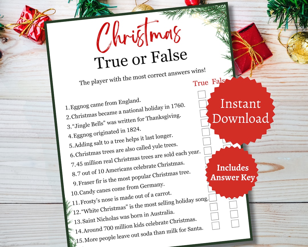 Christmas True or False Game Christmas Trivia Game Christmas Etsy UK
