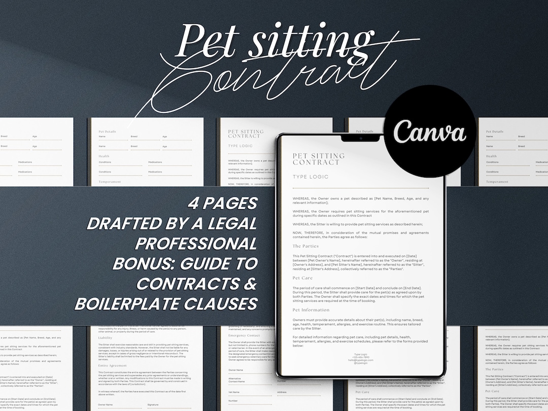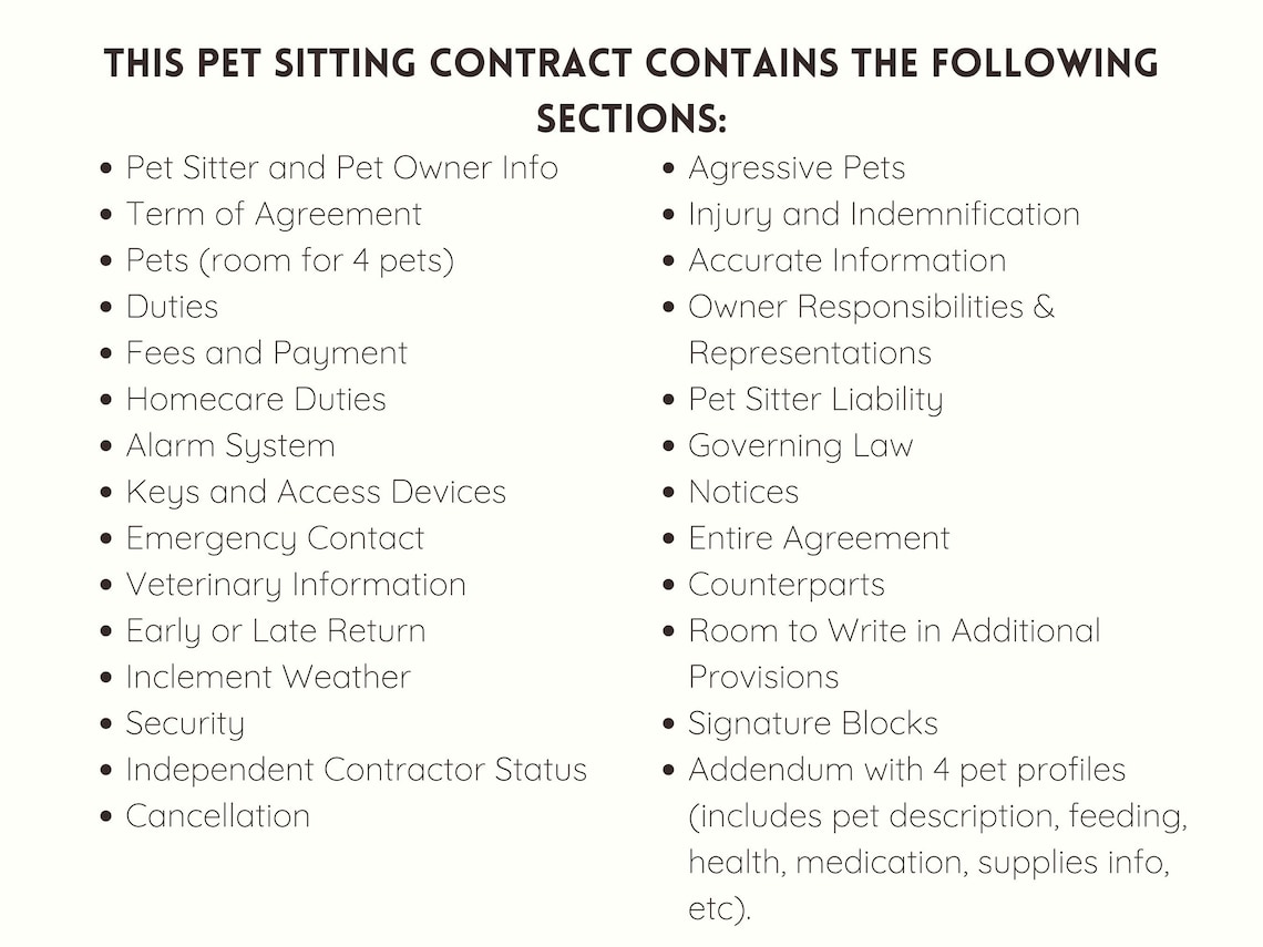 Pet Sitting Contract Template Attorney Written Editable Instant Dow