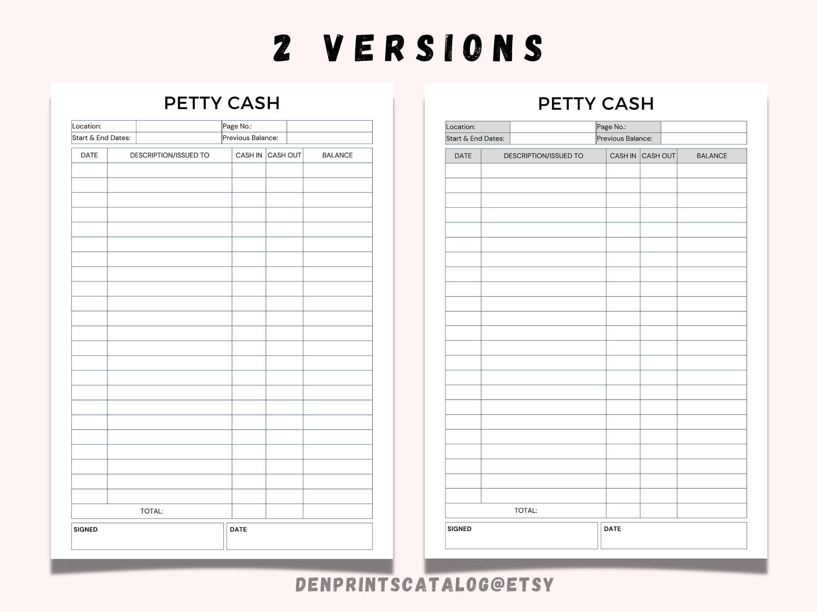 Petty Cash Log Printable Petty Cash Template Ideal for Your Etsy UK