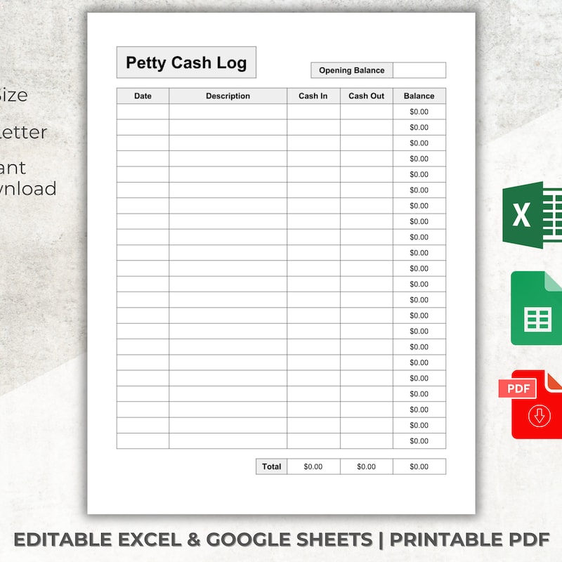 Petty Cash Ledger Editable and Printable Petty Cash Log Etsy