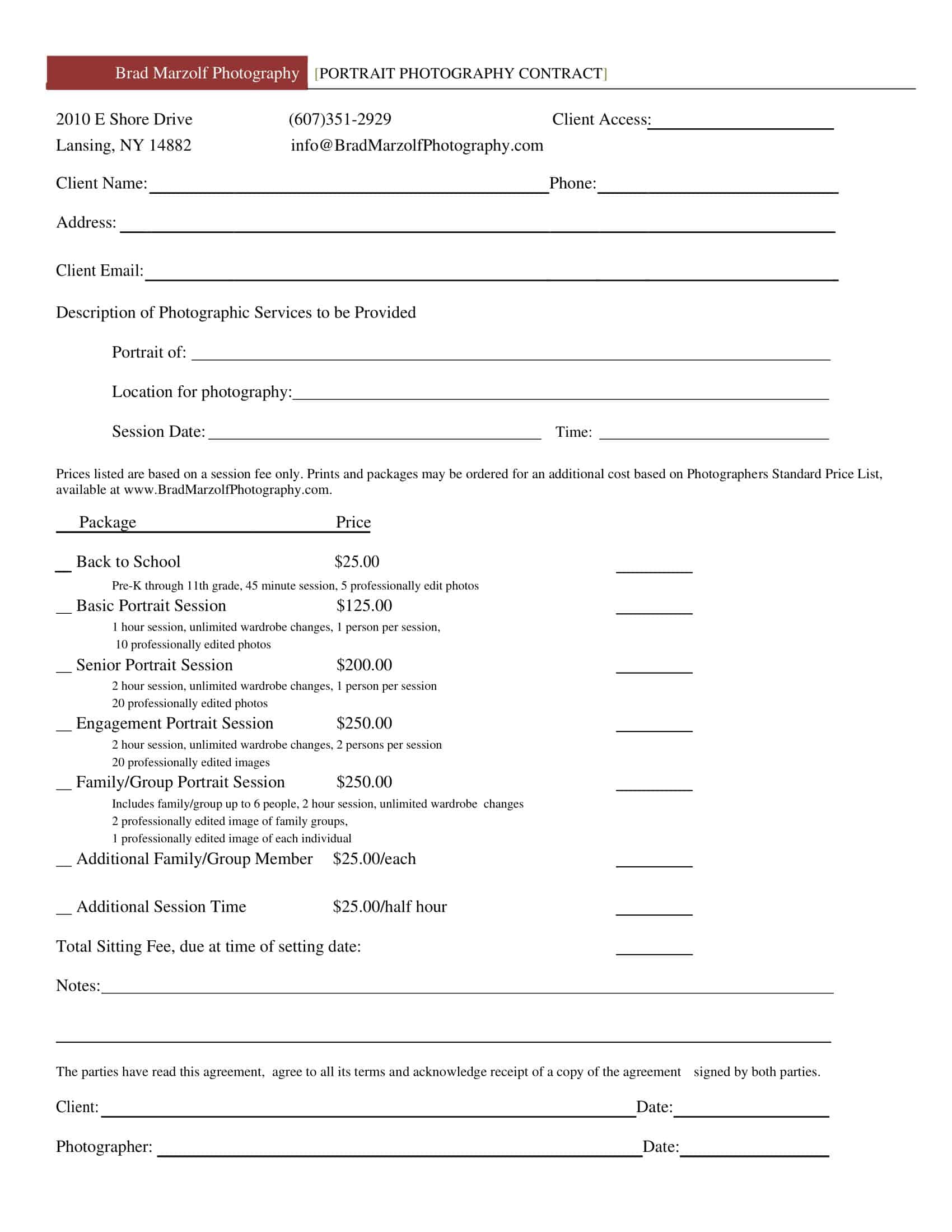 Portrait Photography Contract Template prntbl concejomunicipaldechinu
