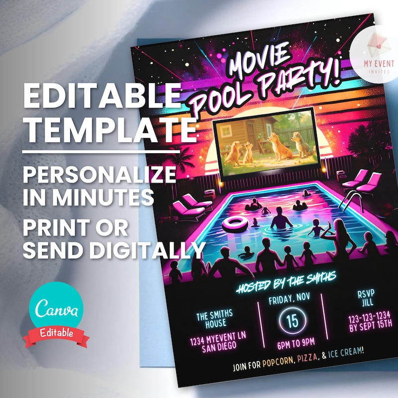 Editable Free Printable Birthday Pool Party Invitations Templates