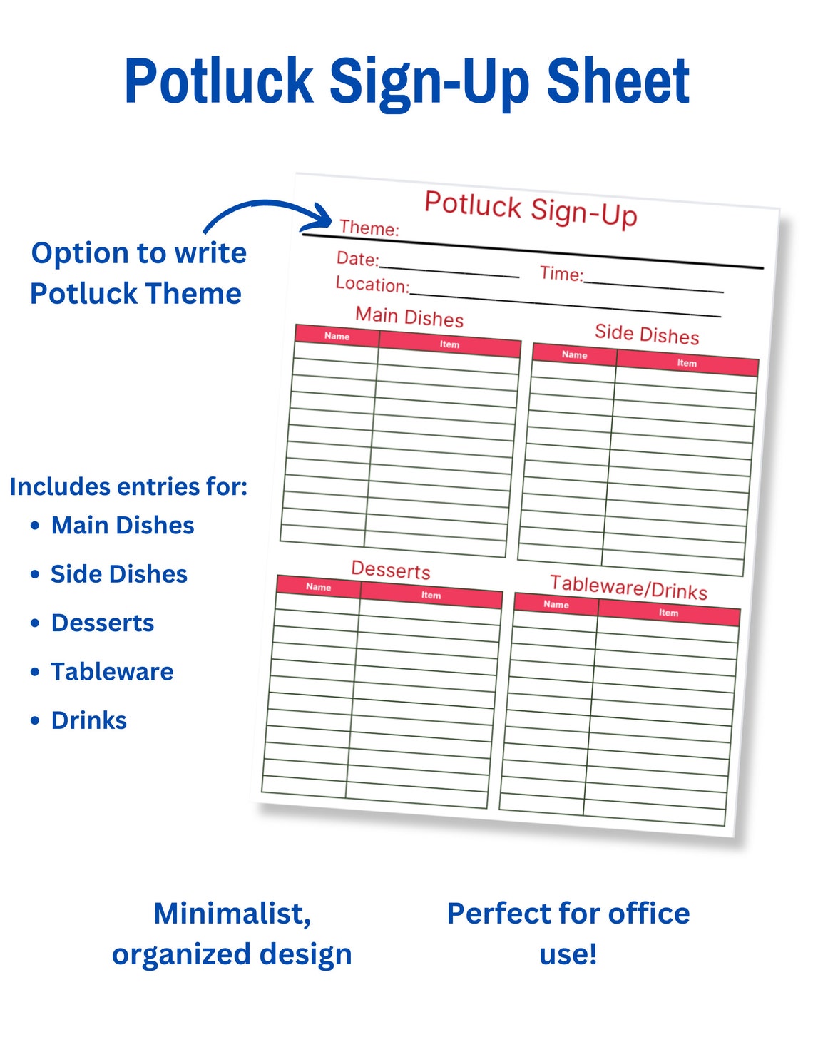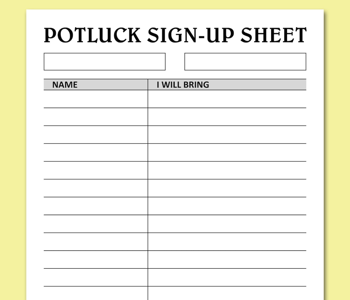 Potluck Volunteer Sign Up Printable Template: Organize Your Event
