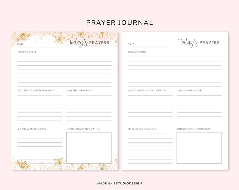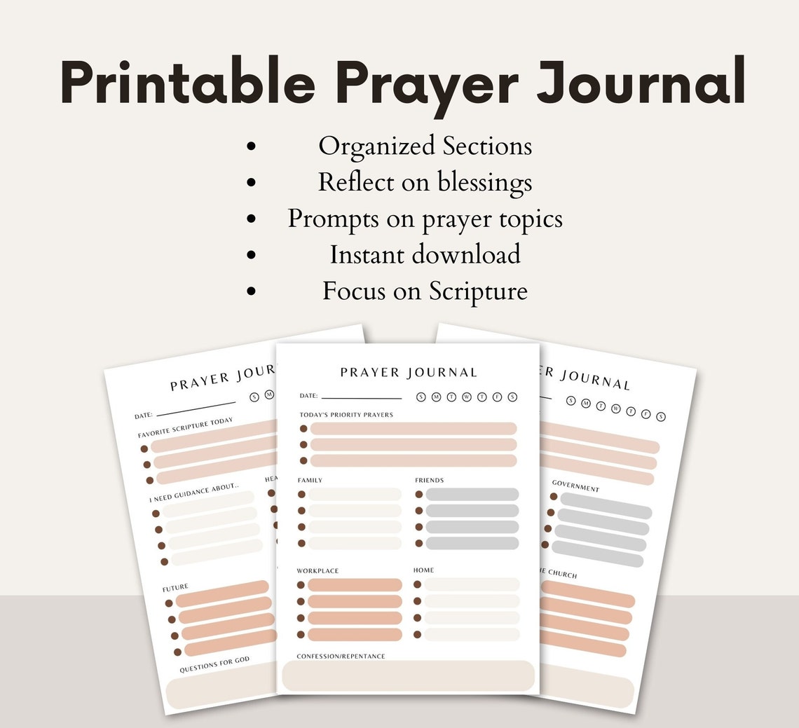 Prayer Journal Sheets Printable Digital Download Etsy