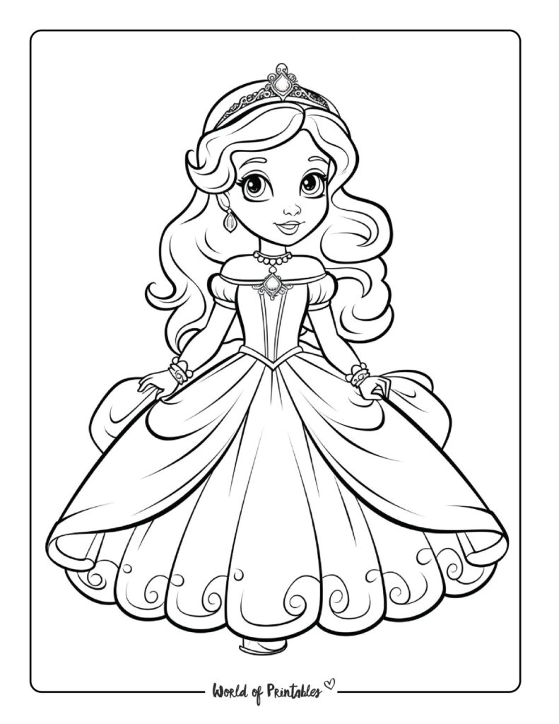 Cute Princess Coloring Pages (Free Printable PDFs)