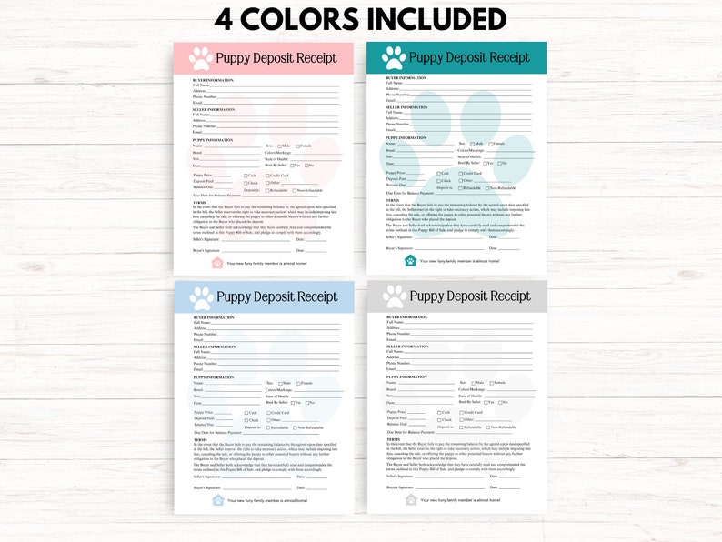 Puppy Bill of Sale Form Puppy Deposit Receipt Puppy Contract Dog