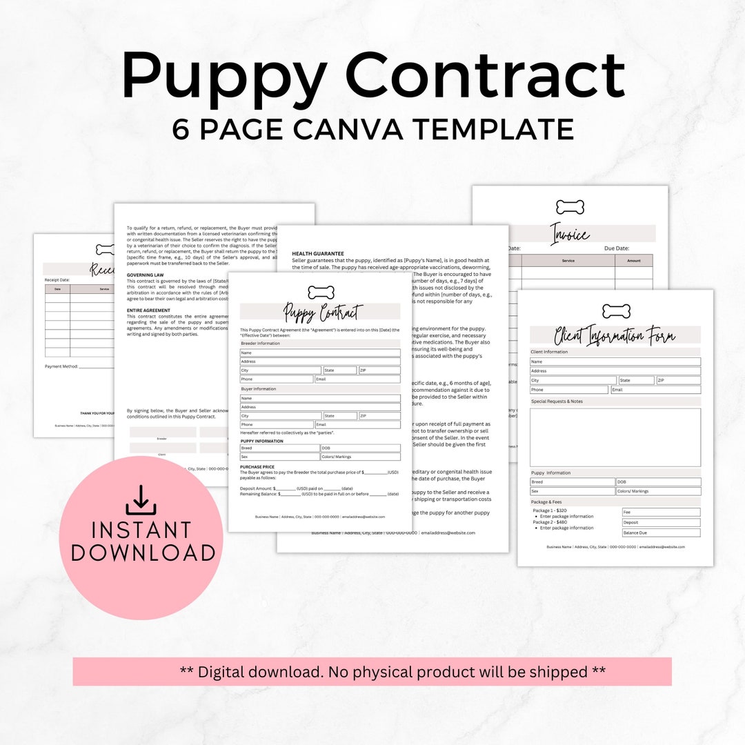 Puppy Pet Deposit Contract Etsy