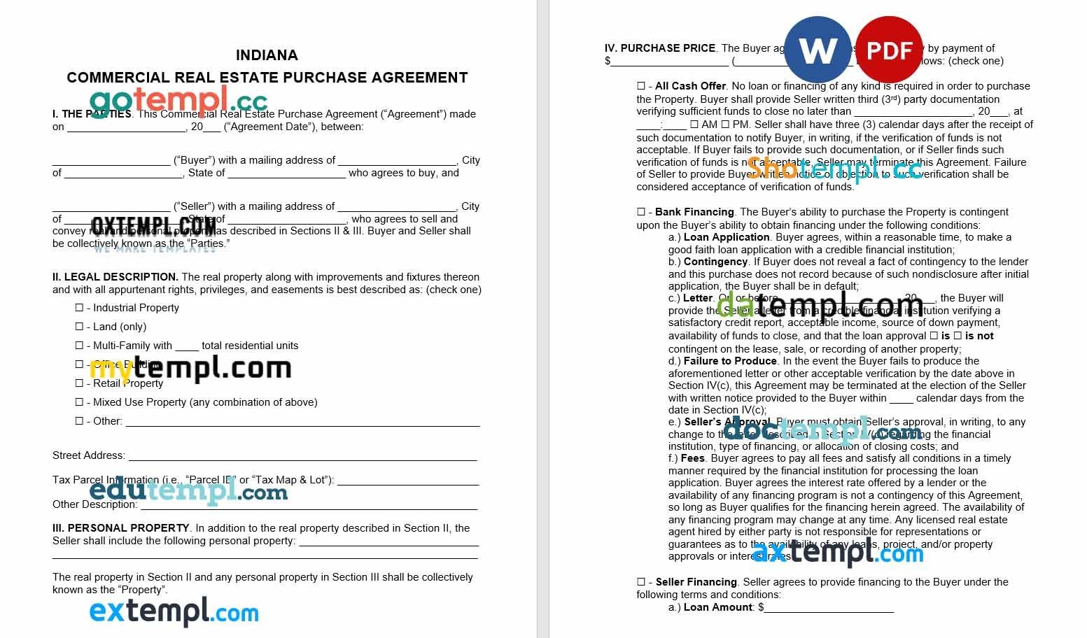 Indiana Purchase Agreement Templates (Free) Word PDF ODT
