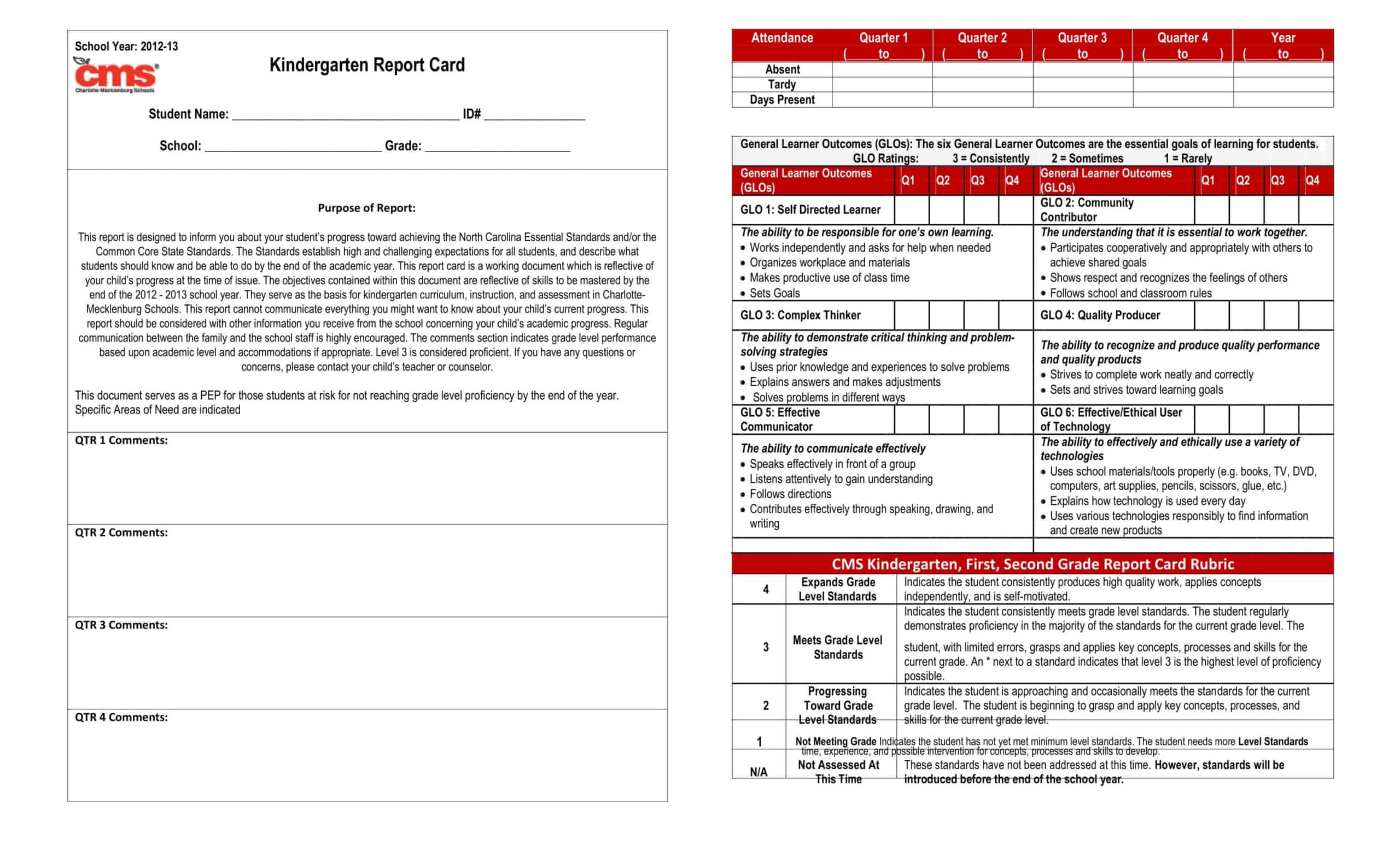 Free Printable Kindergarten Report Card Template Cards Design Templates