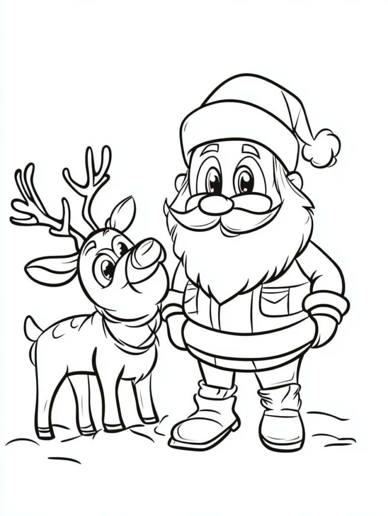 Cheerful Santa With Reindeer Coloring Page Coloring Pages com