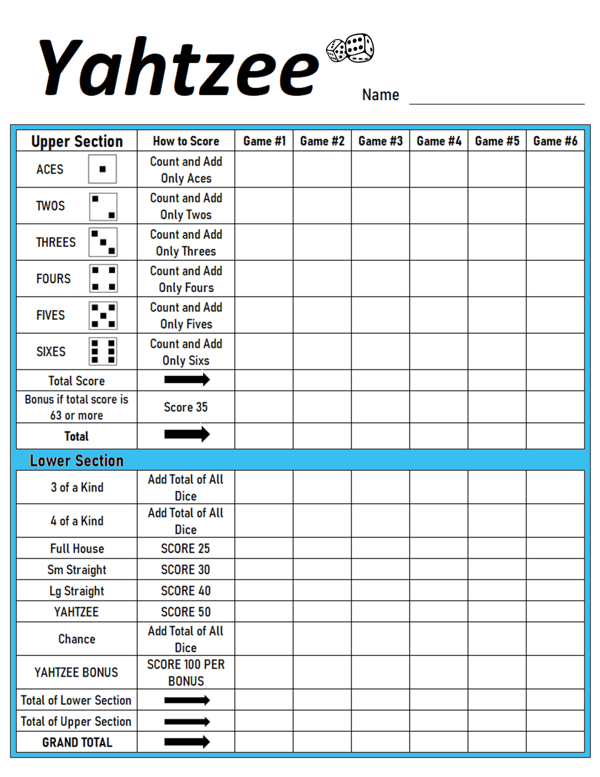 Free Printable Yahtzee Score Card Sheets PDF Templates