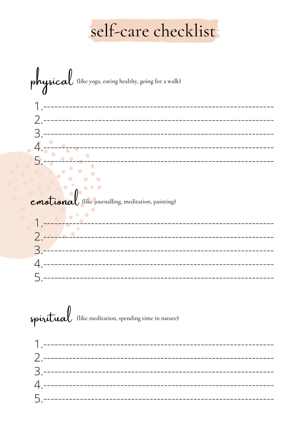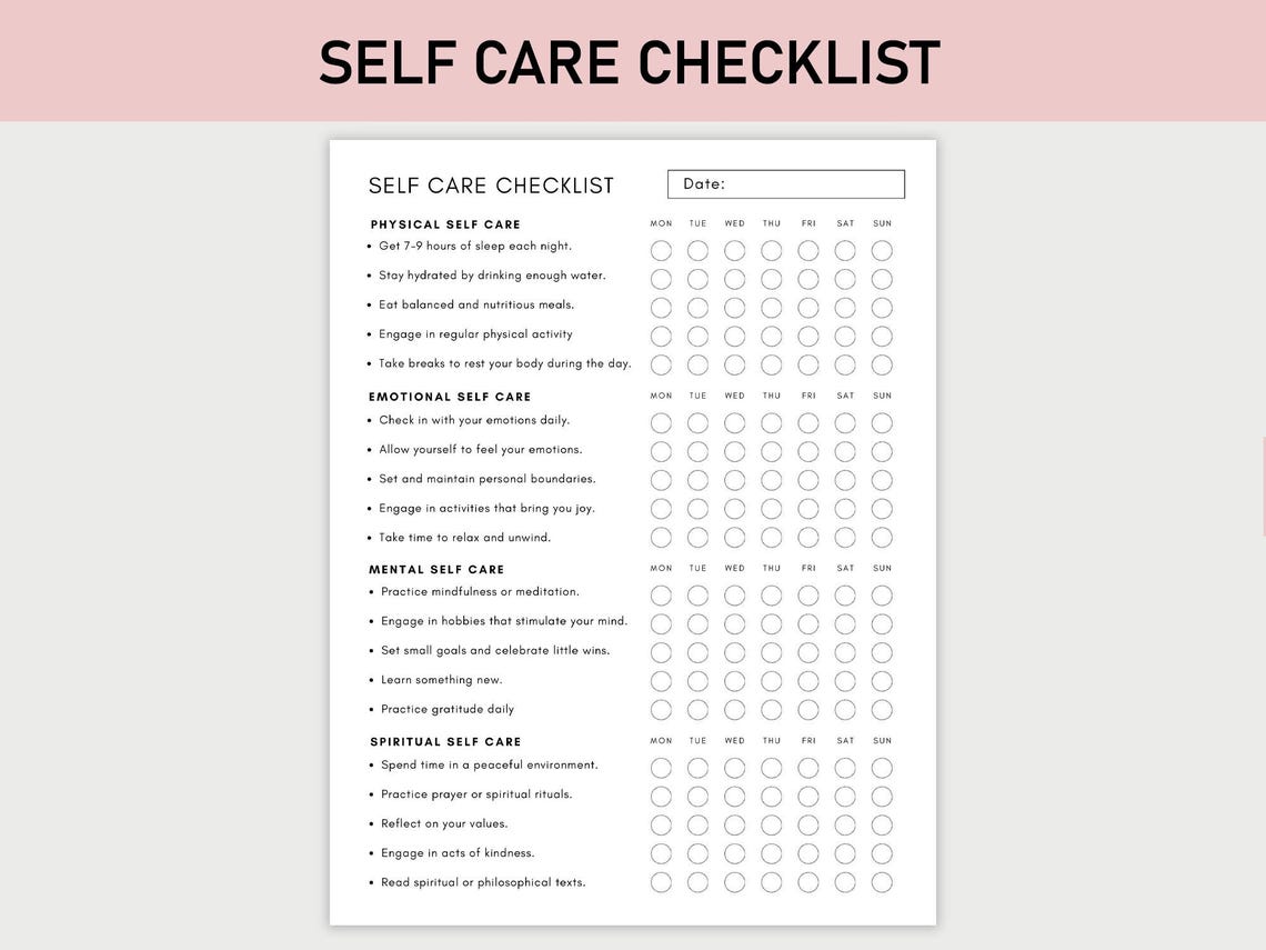 Self Care Checklist Etsy