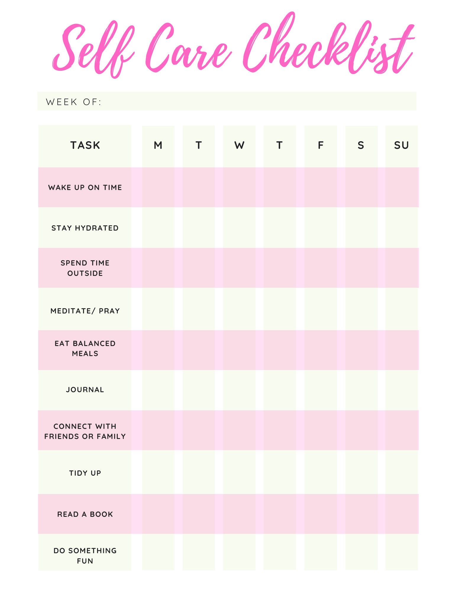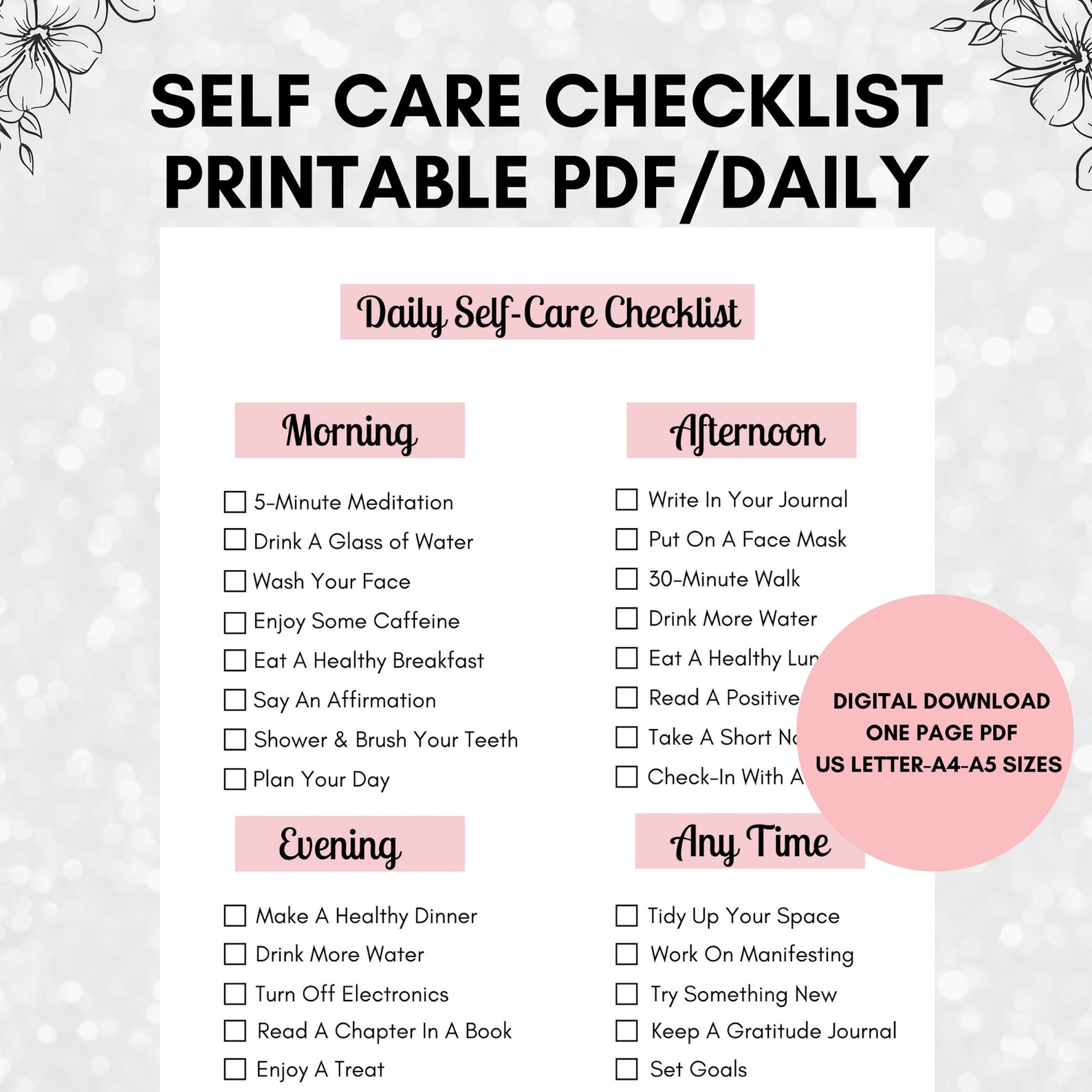 Printable Daily Self care Checklist / Digital Download Etsy
