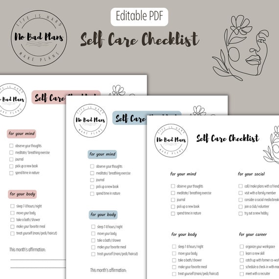 Editable Self Care Checklist Printable PDF Self Care Self Etsy