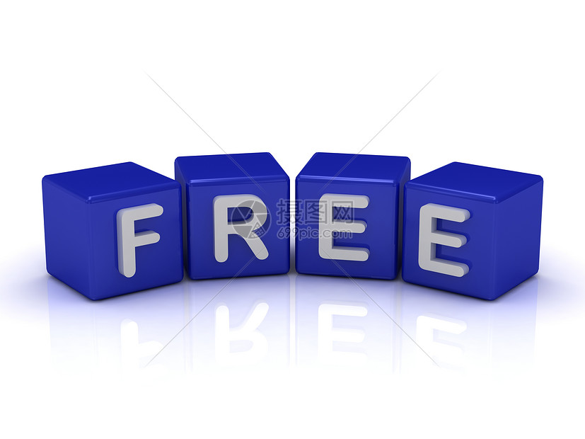 蓝色立方体上的FREE字词高清图片下载 正版图片320828990 摄图网