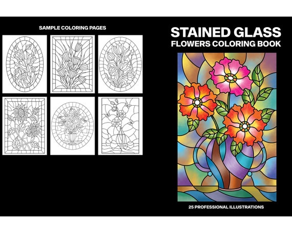 Printable Flower Stained Glass Coloring Pages 25 Floral Etsy