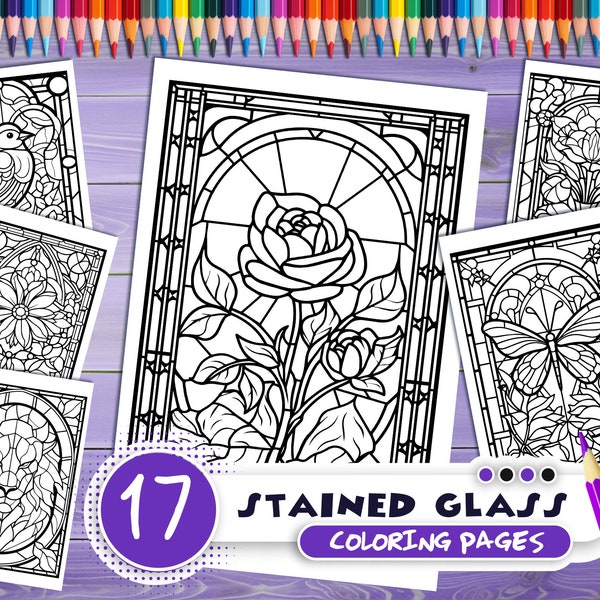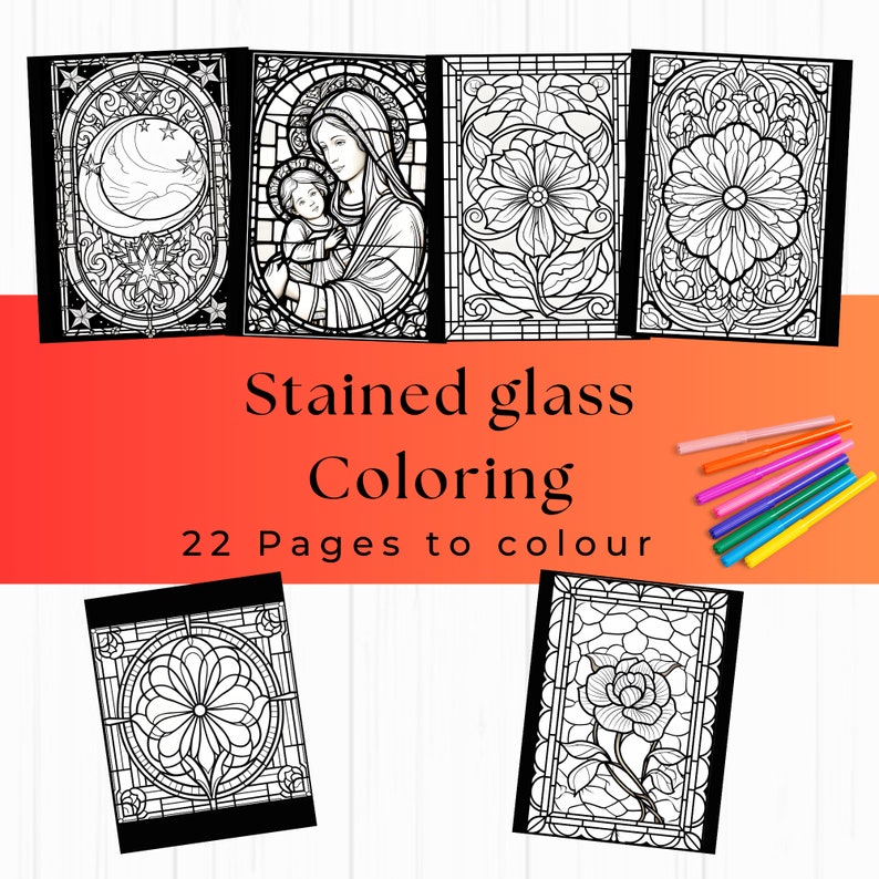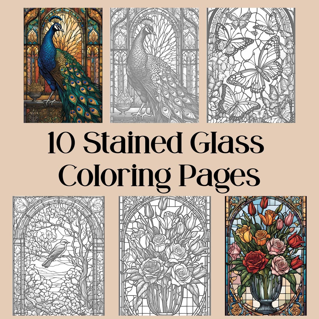 Stained Glass Coloring Pages (PDF Printables) by Kamall Sayeef TPT
