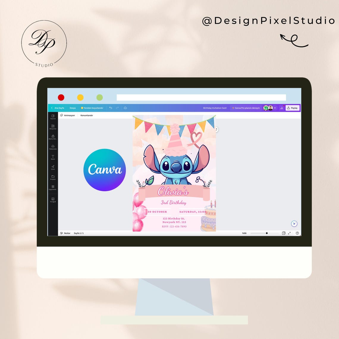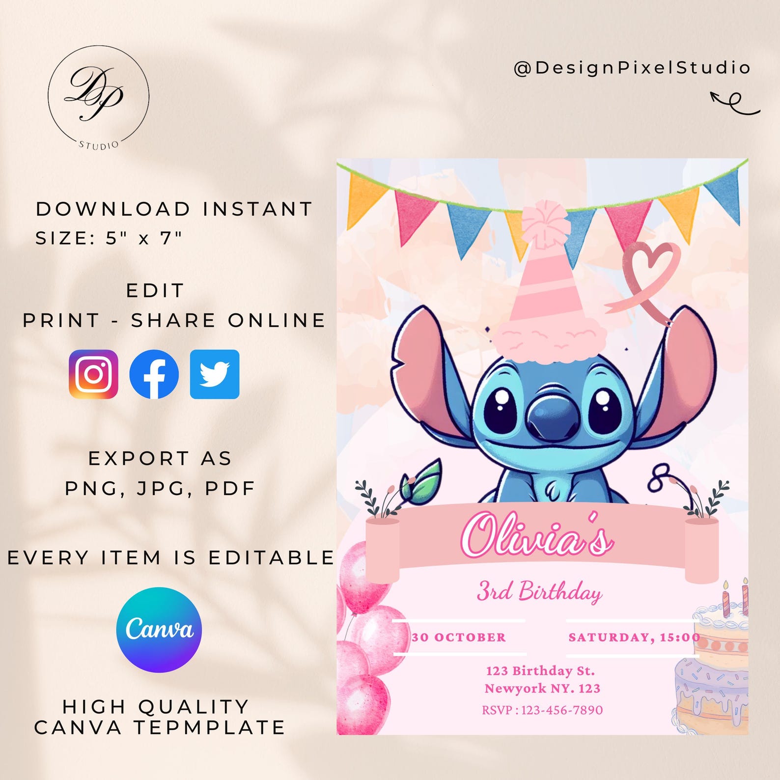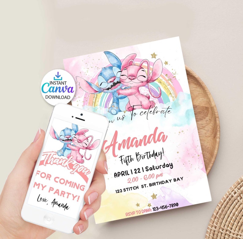 Stitch Birthday Invitation Editable Party Invite Canva Template