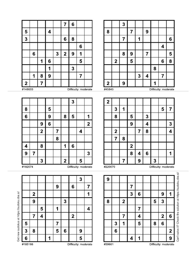 Sudoku Printable Medium 6 Per Page Sudoku Puzzles Printable