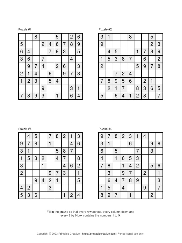 Sudoku Puzzles #17 20 (Easy) Print it Free