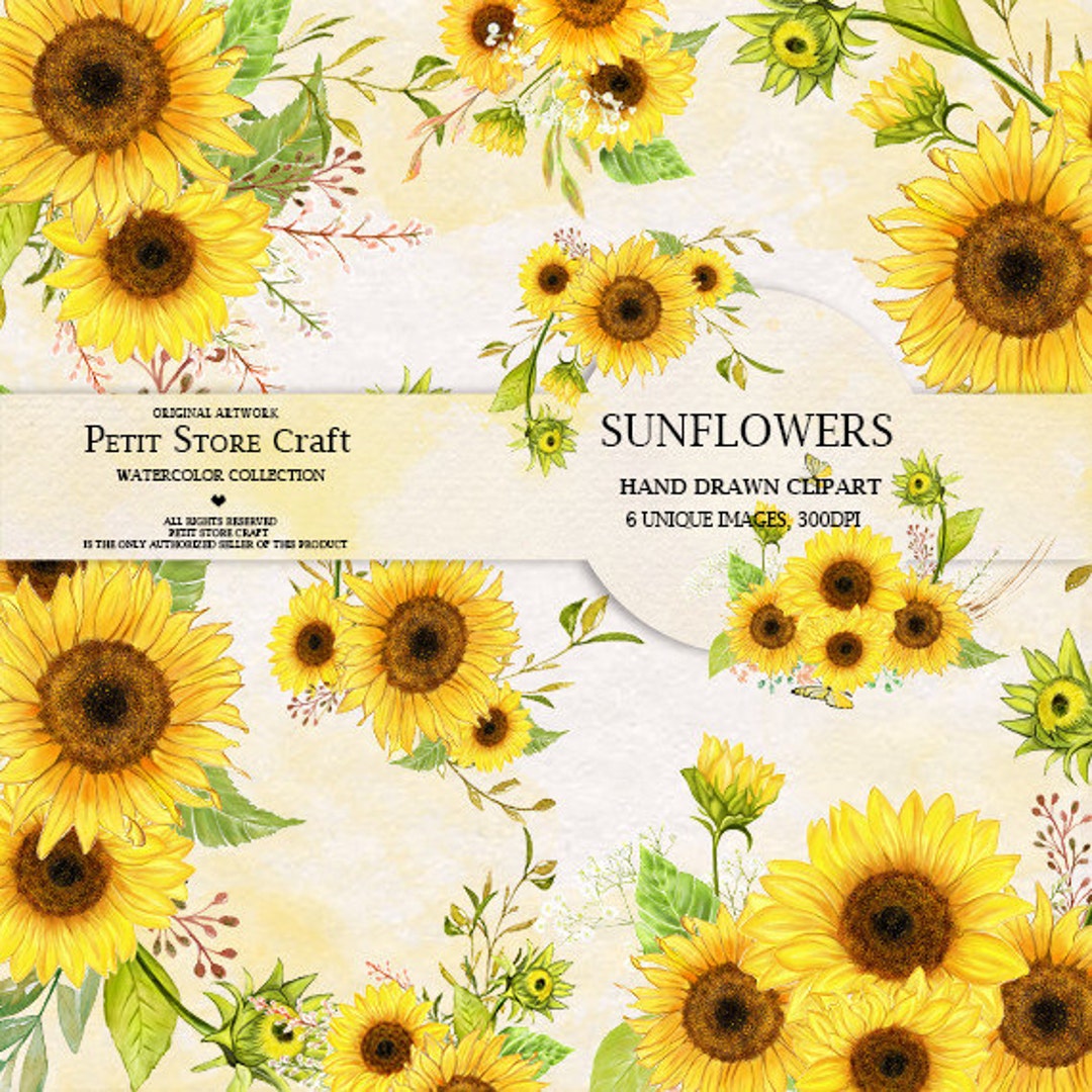 Sunflower Watercolor Flower Clipart Hand Painted DIY Clip Art