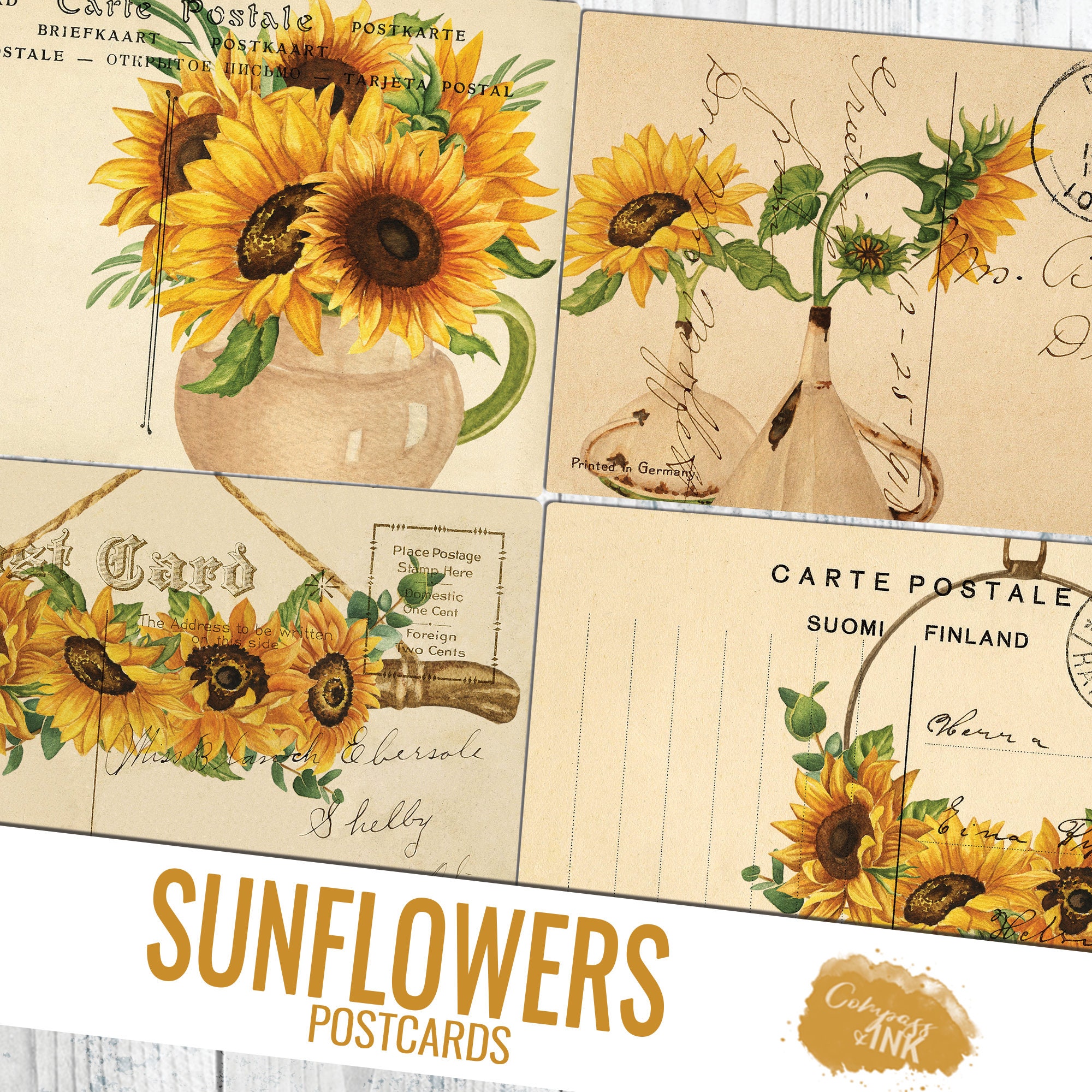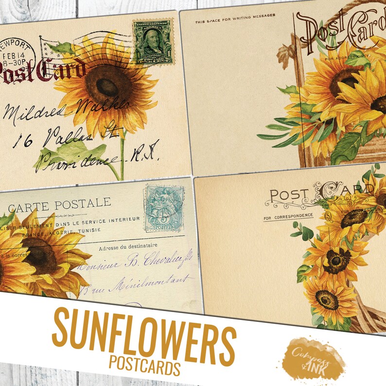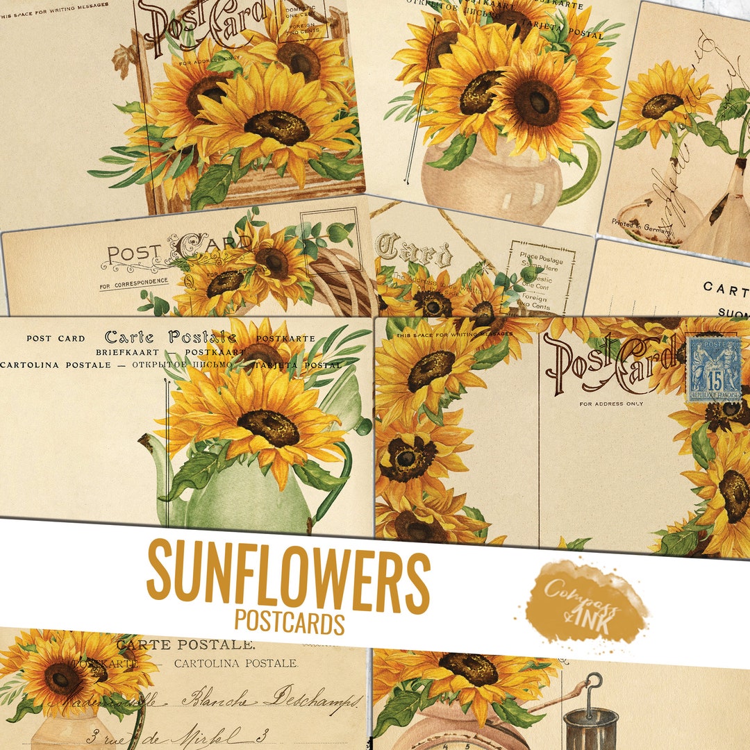 Vintage Sunflower Postcard Printable Junk Journal Ephemera Etsy