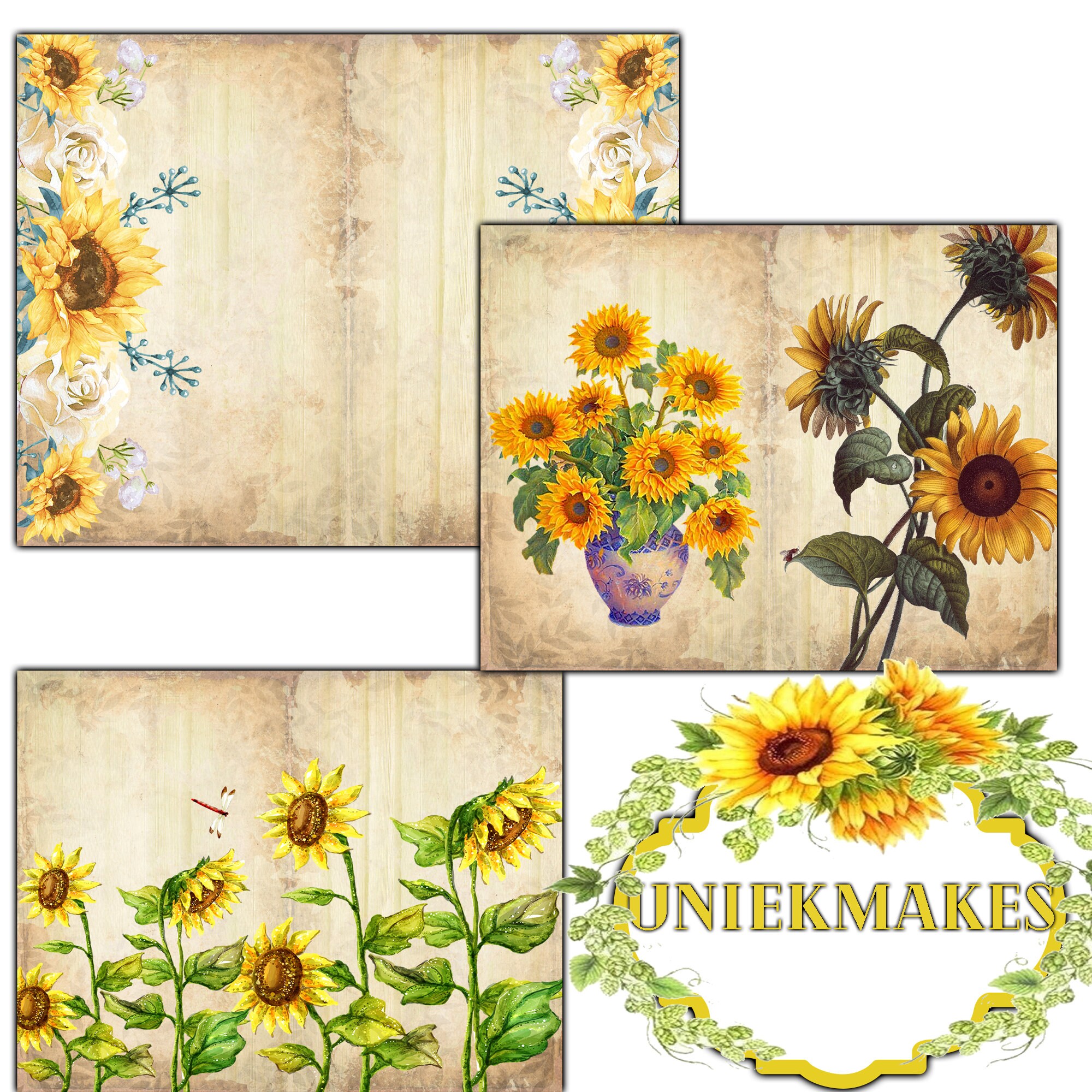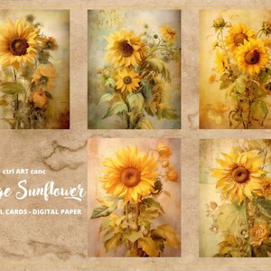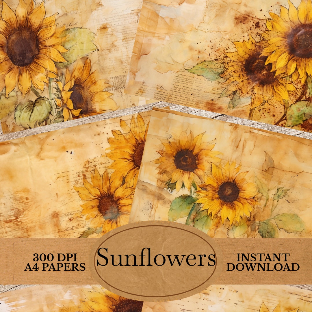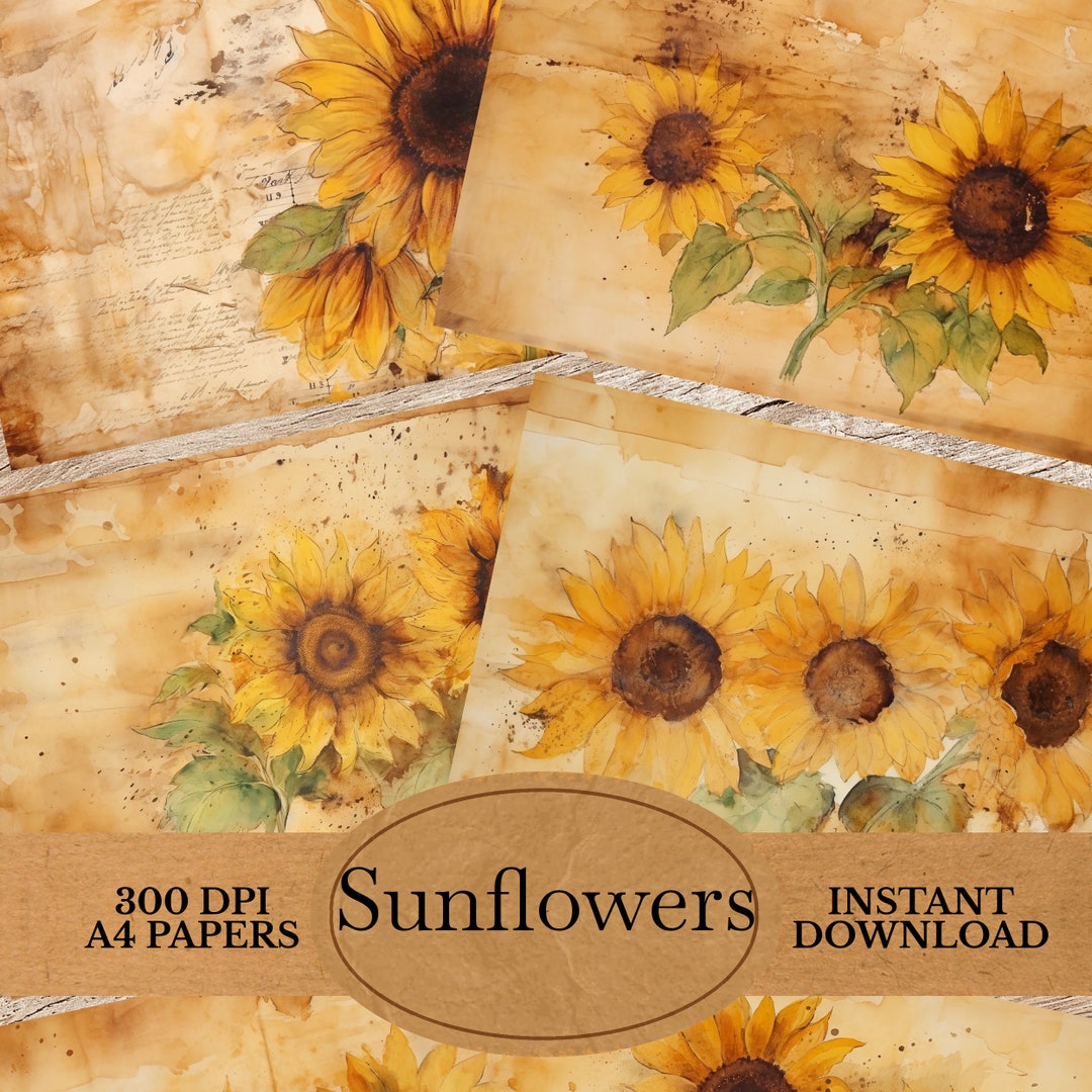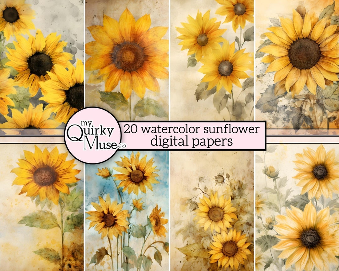 Watercolor Sunflower Digital Paper for Your Junk Journals Grunge
