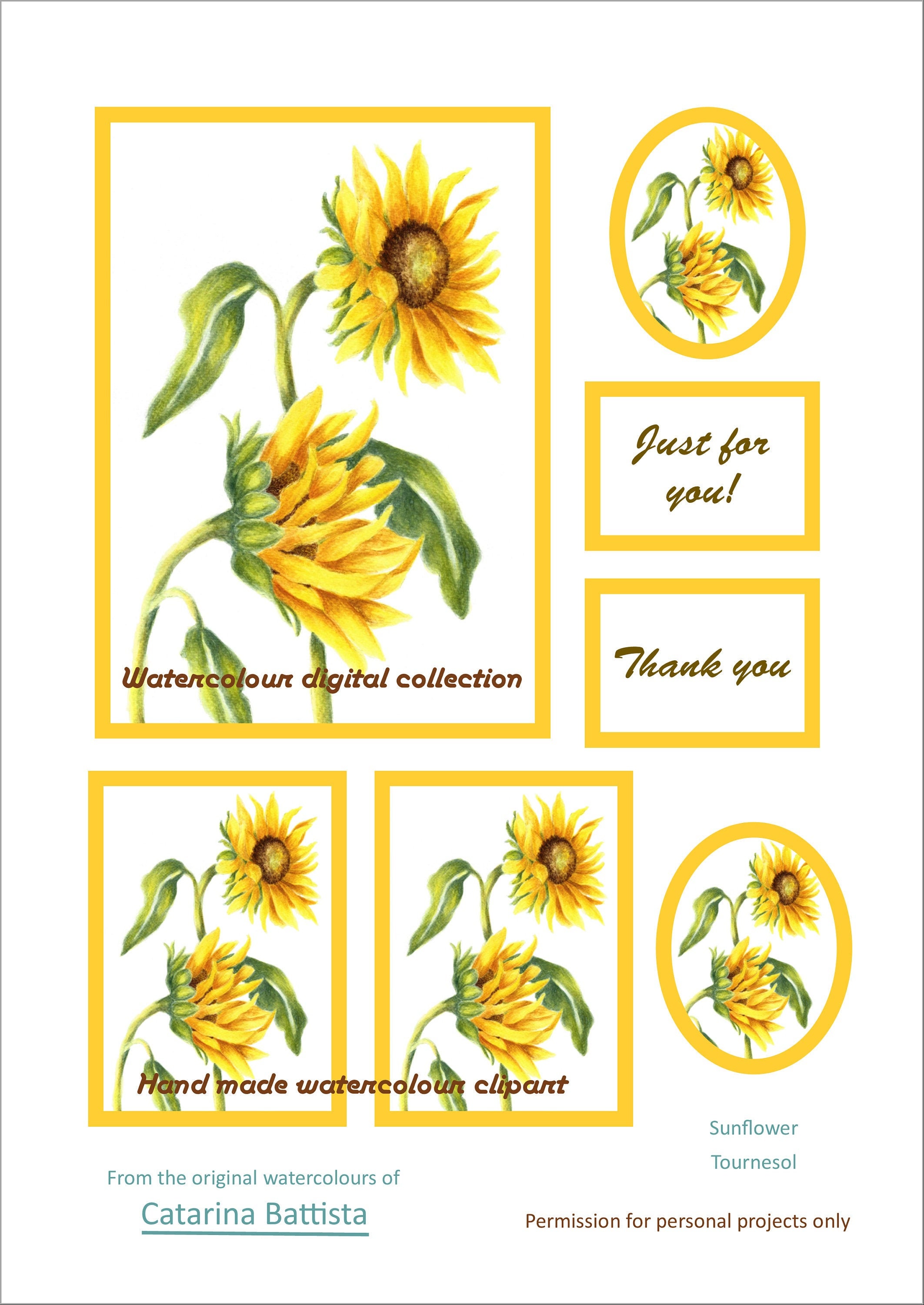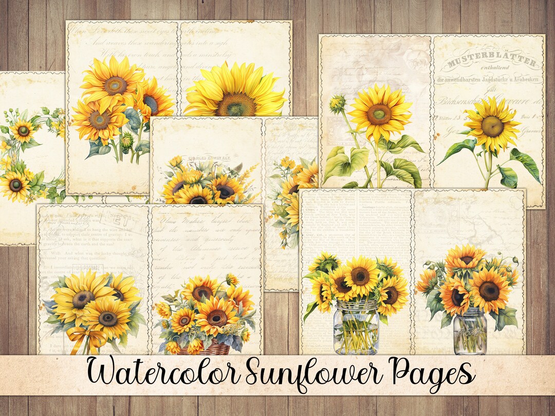 Printable Junk Journal Papers Watercolor Sunflowers Signature Sheets