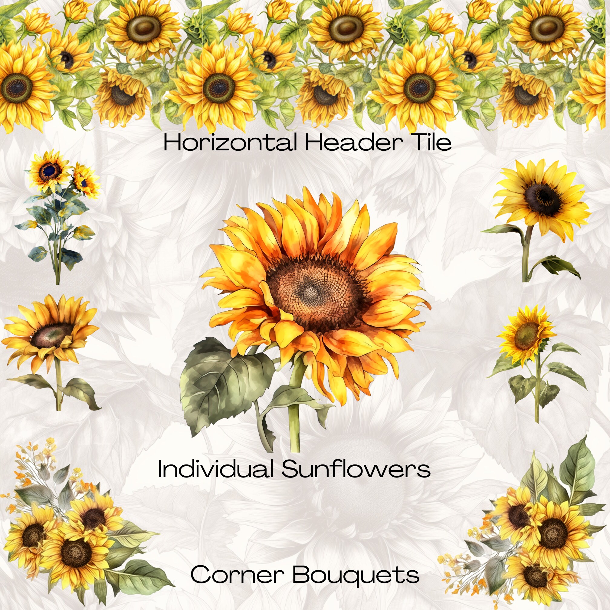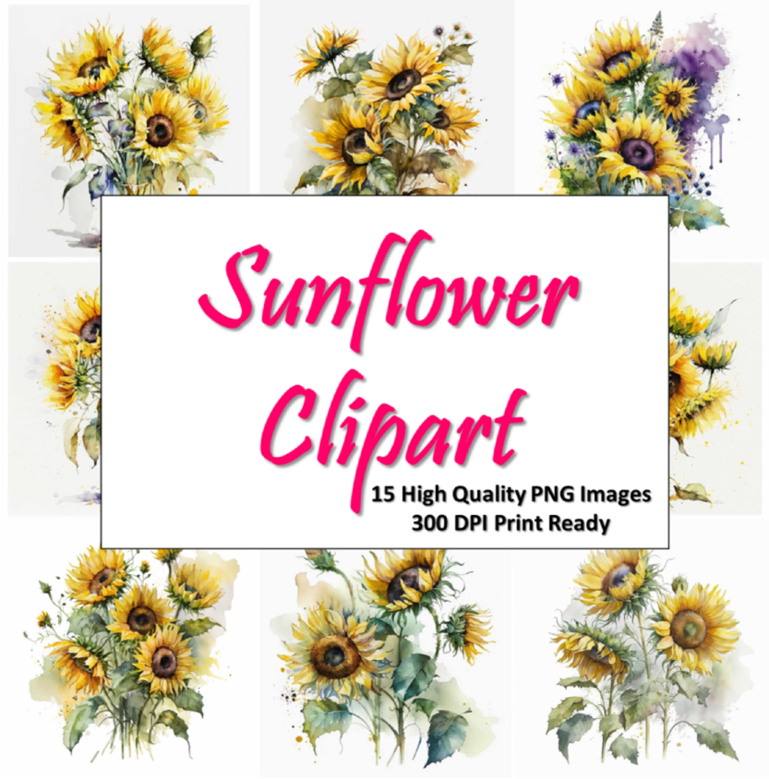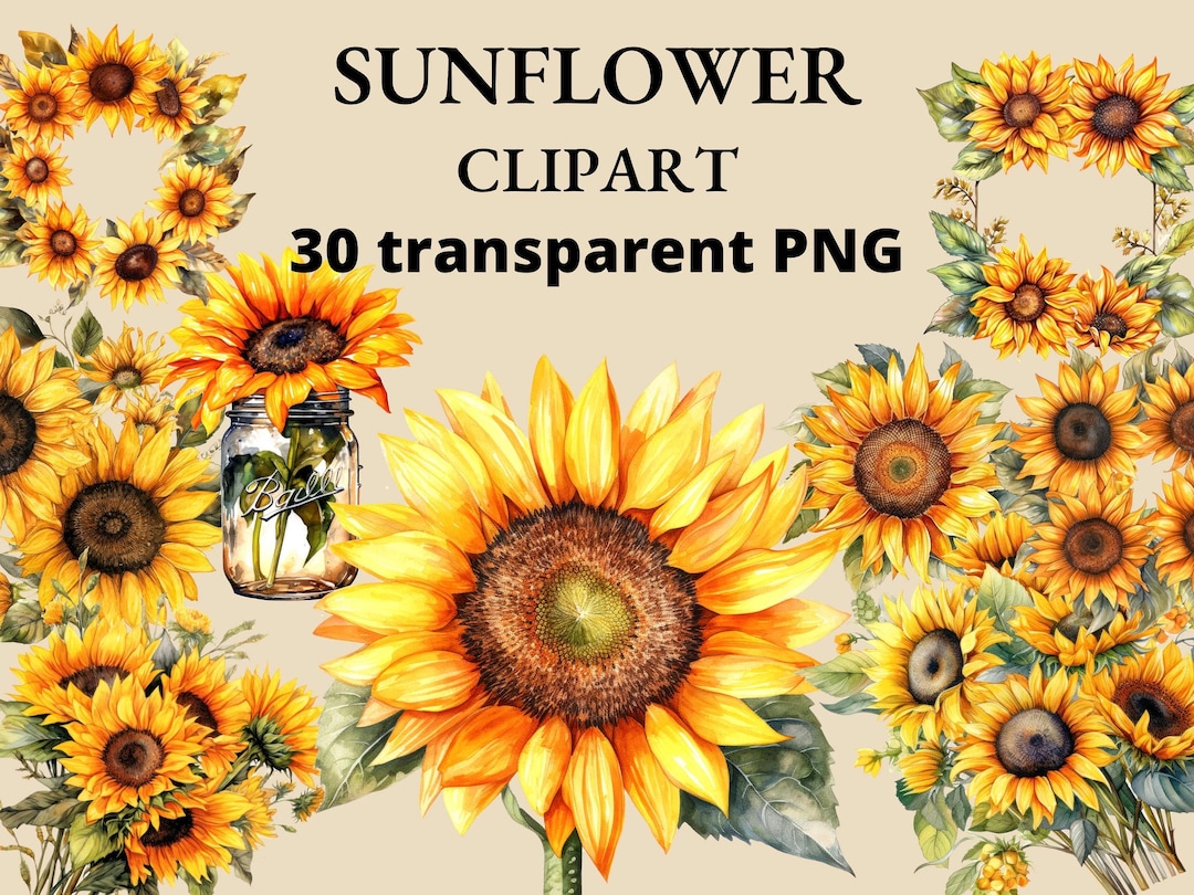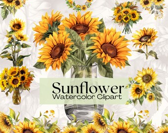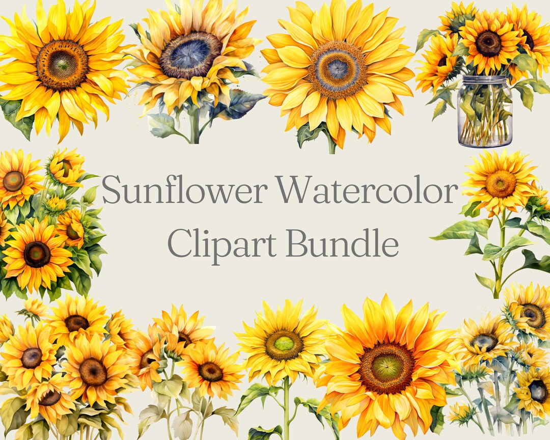 Watercolor Sunflower Clipart Bundle Watercolor Floral Clipart
