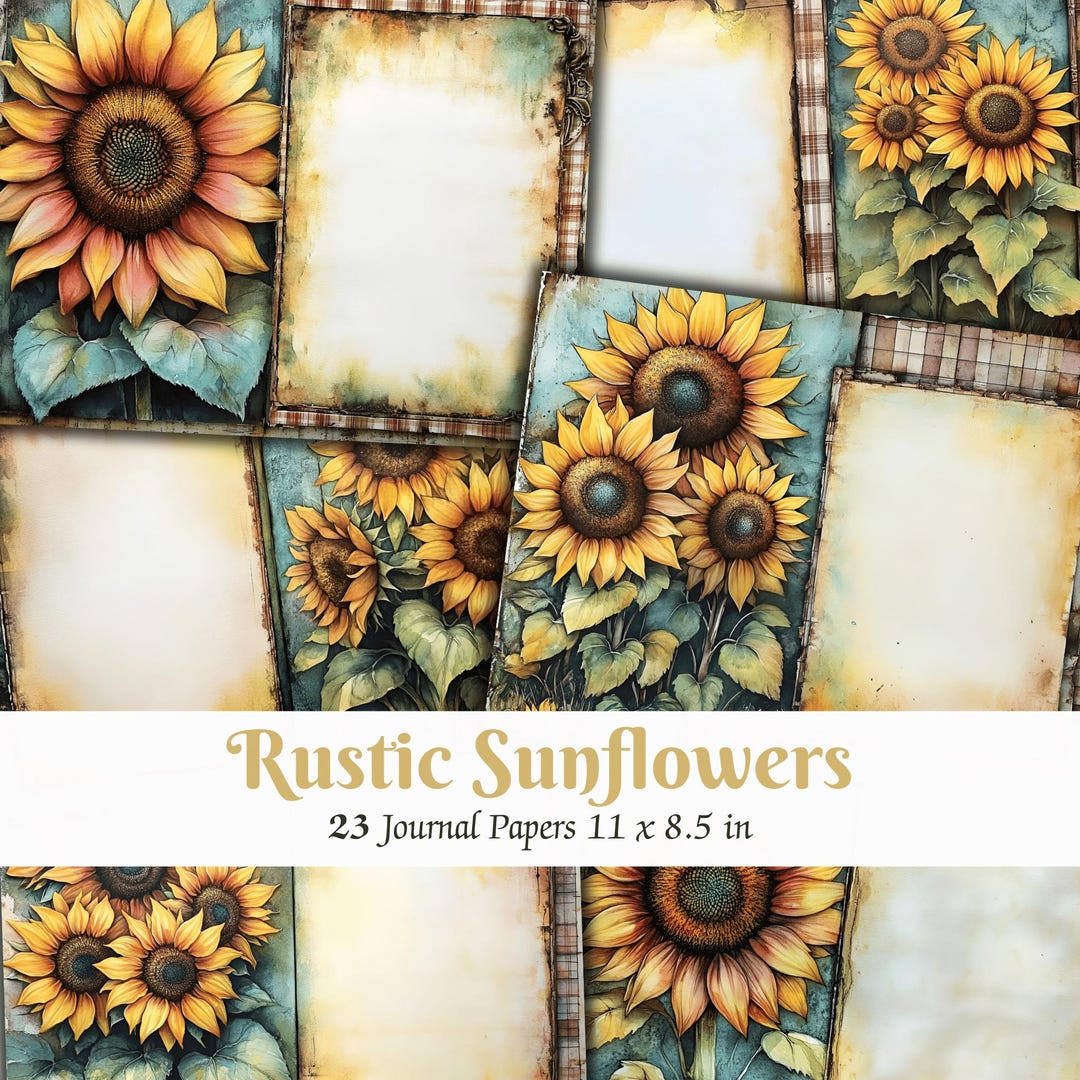 Rustic Sunflower Junk Journal Printable Pages Vintage Botanical Junk