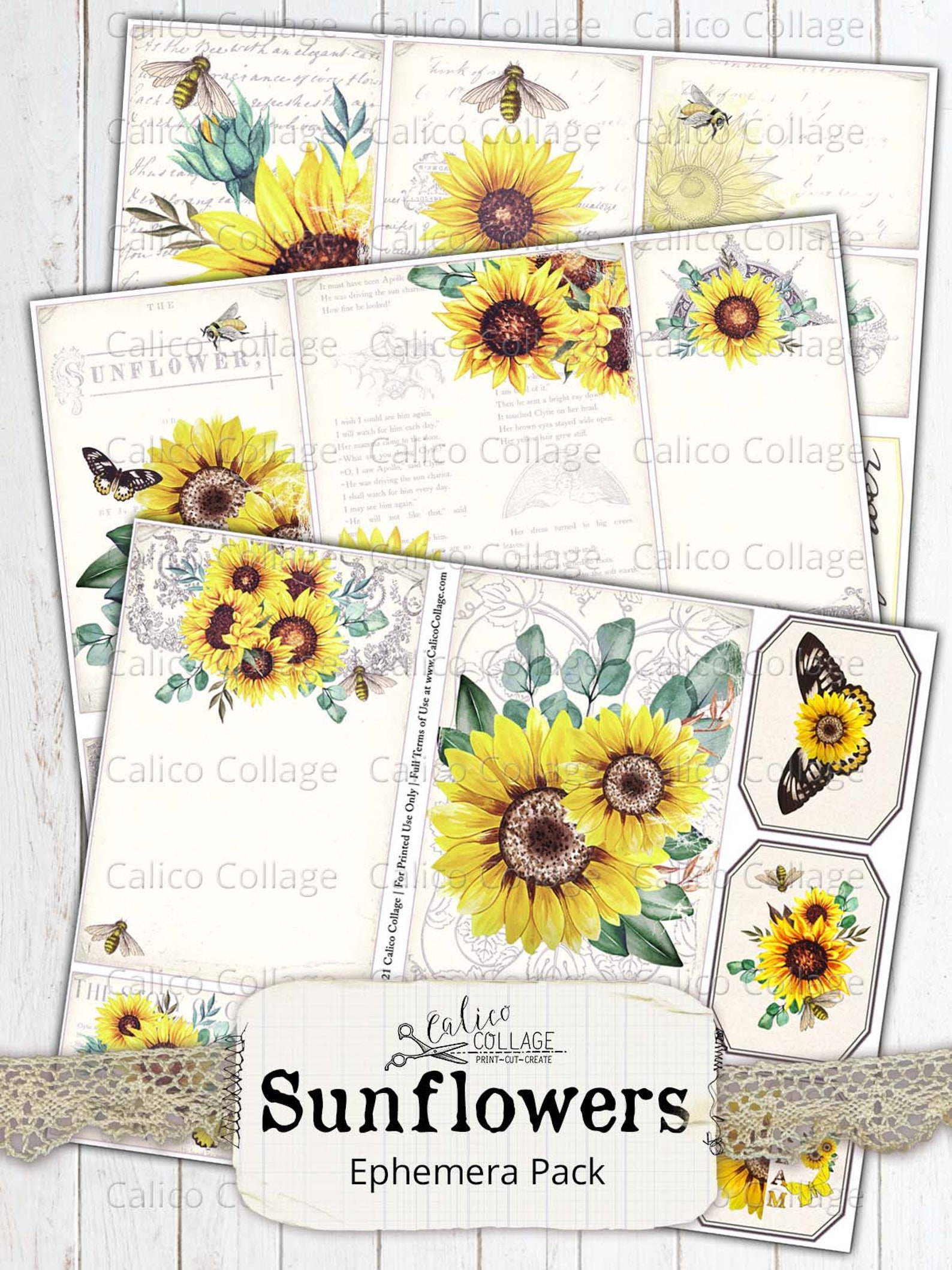 Printable Sunflower Ephemera Pack Vintage Junk Journal Etsy