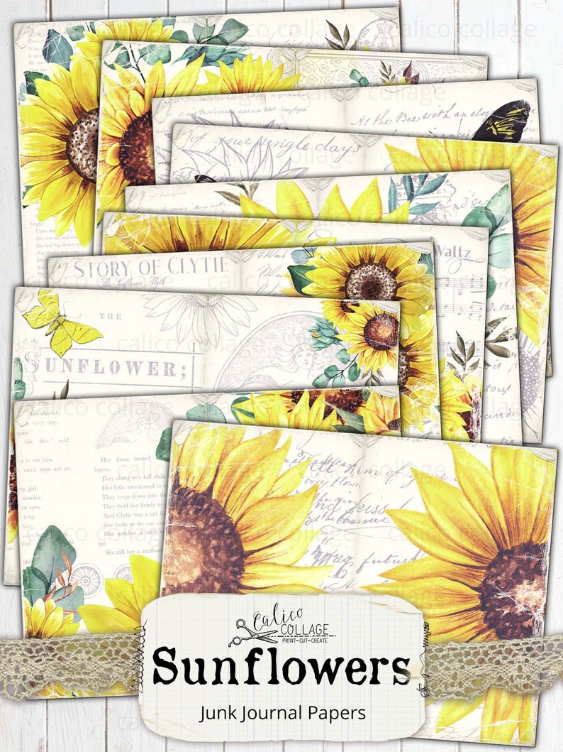 Sunflower Junk Journal Pages Digital Download Printable Etsy