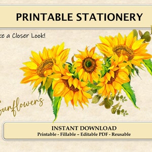Sunflower Bursts Printable Stationery Sunflower Stationary A4 US