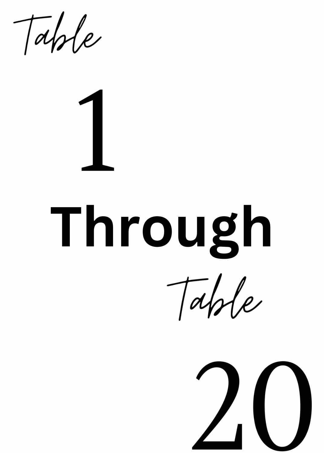 Printable Wedding Table Numbers 1 20 Wedding Table Number Etsy