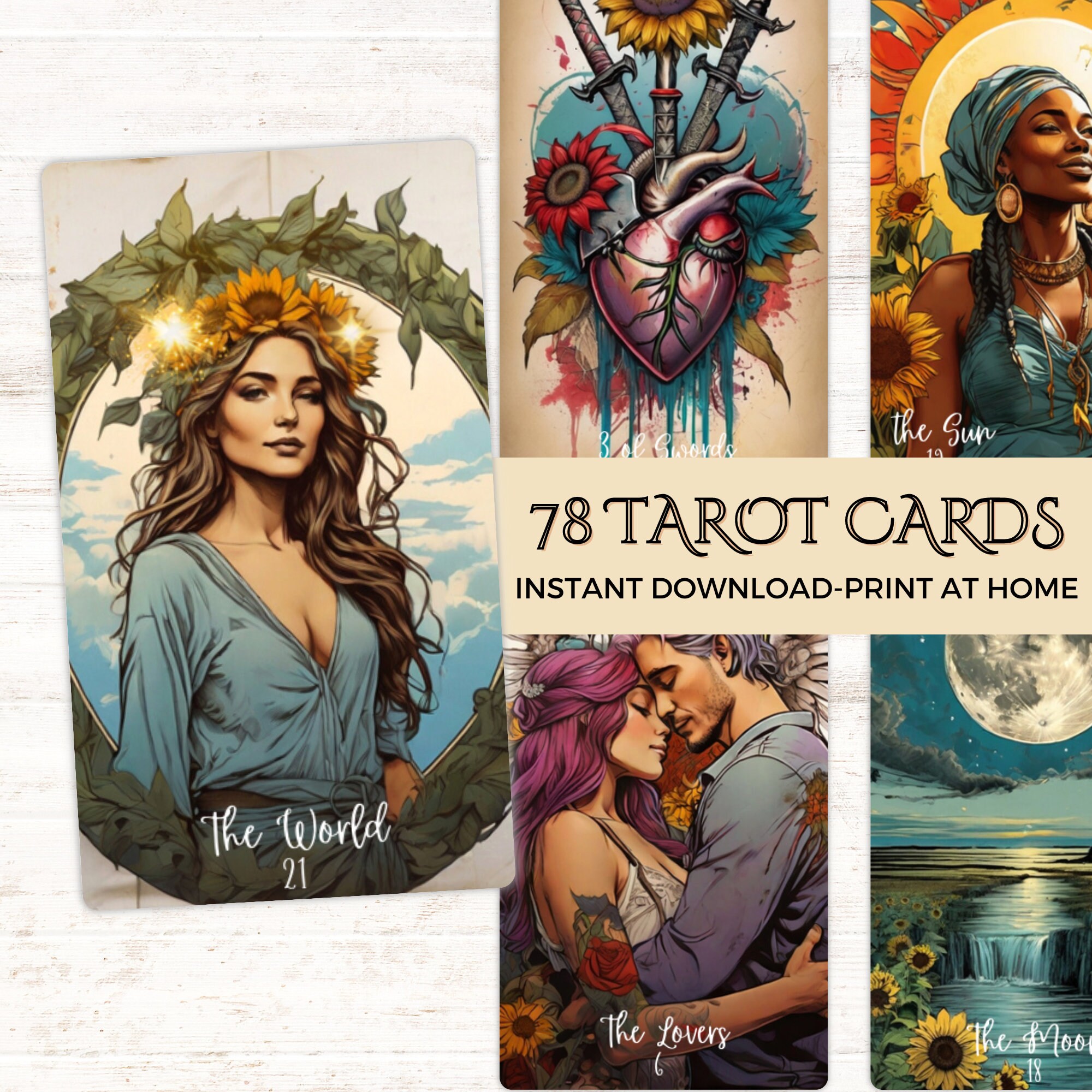 Printable TAROT Cards Digital 78 Card Tarot Deck tarot Size Beginner
