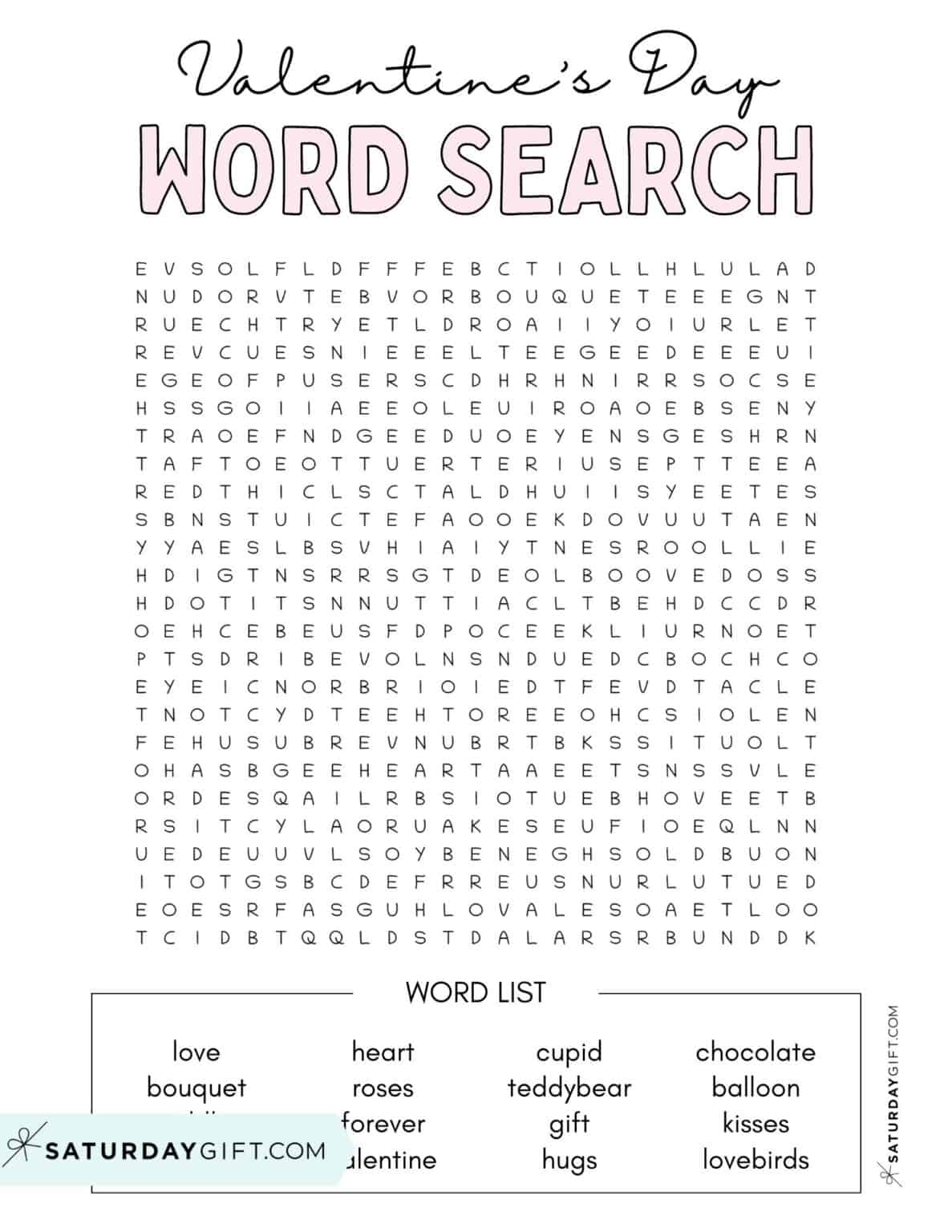 Valentine #39 s Day Word Search Cute Free Printables SaturdayGift