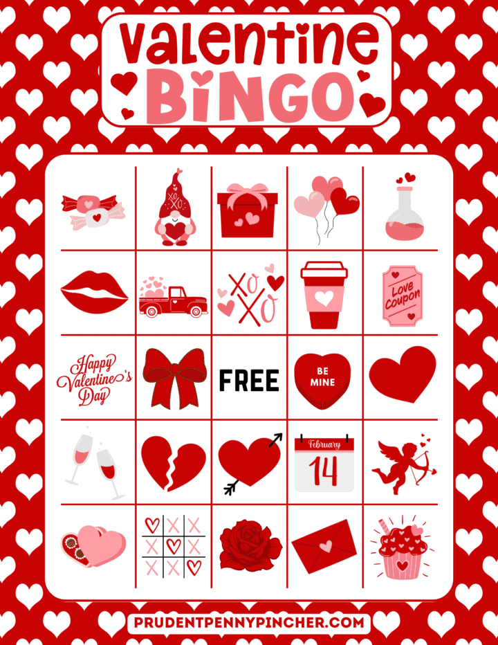 Free Printable Valentine s Day Bingo Cards Prudent Penny Pincher