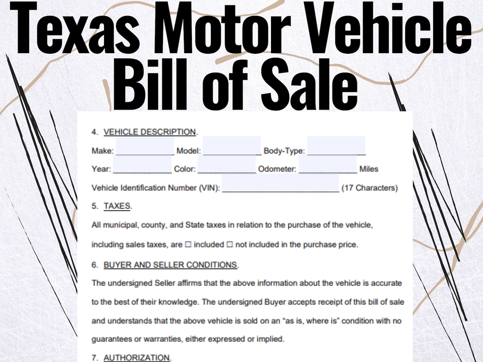 Make a Valid Texas Motor Vehicle Bill of Sale With Our Printable Template