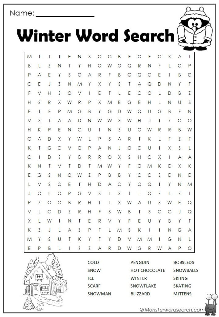 Winter Word Search Monster Word Search Printable Word Search