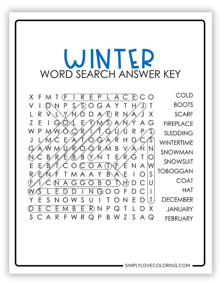 Winter Word Search (Free PDF Printables) Simply Love Coloring