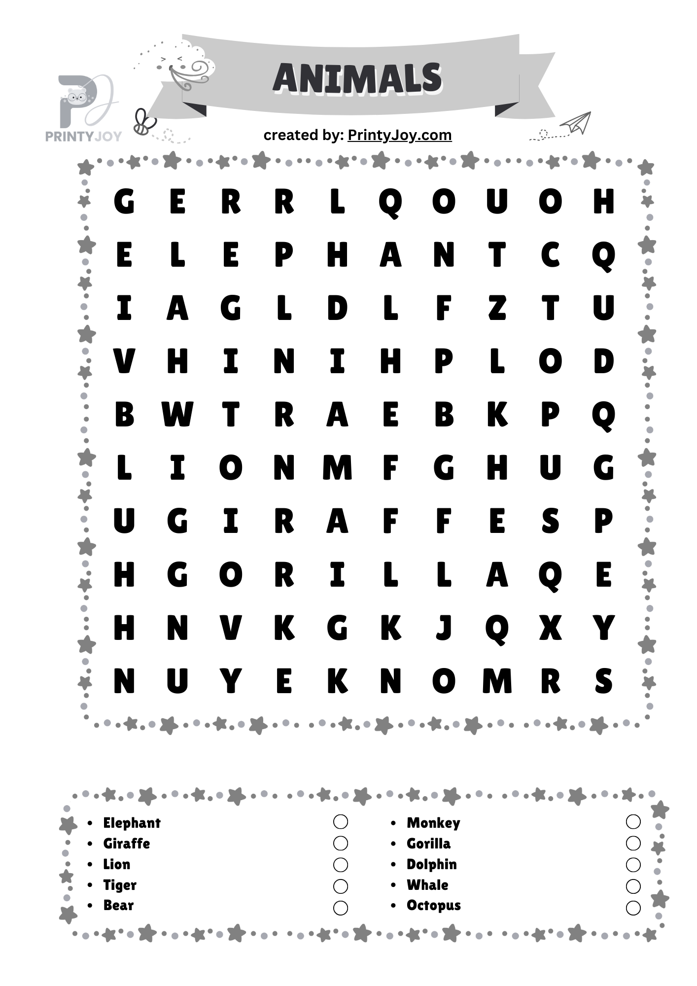 Printable Word Search Animals Fun Free Puzzles for Kids