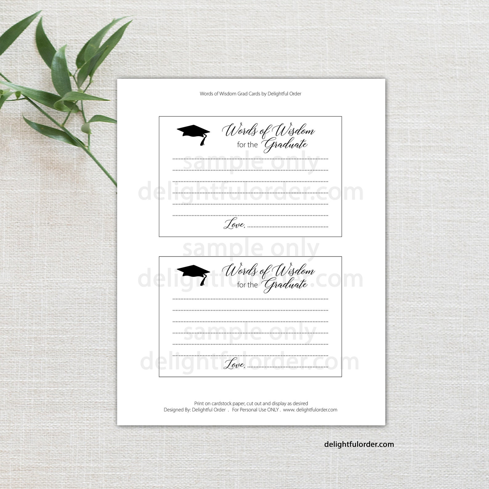 Graduation Words of Wisdom Cards Printable Editable Instant Etsy