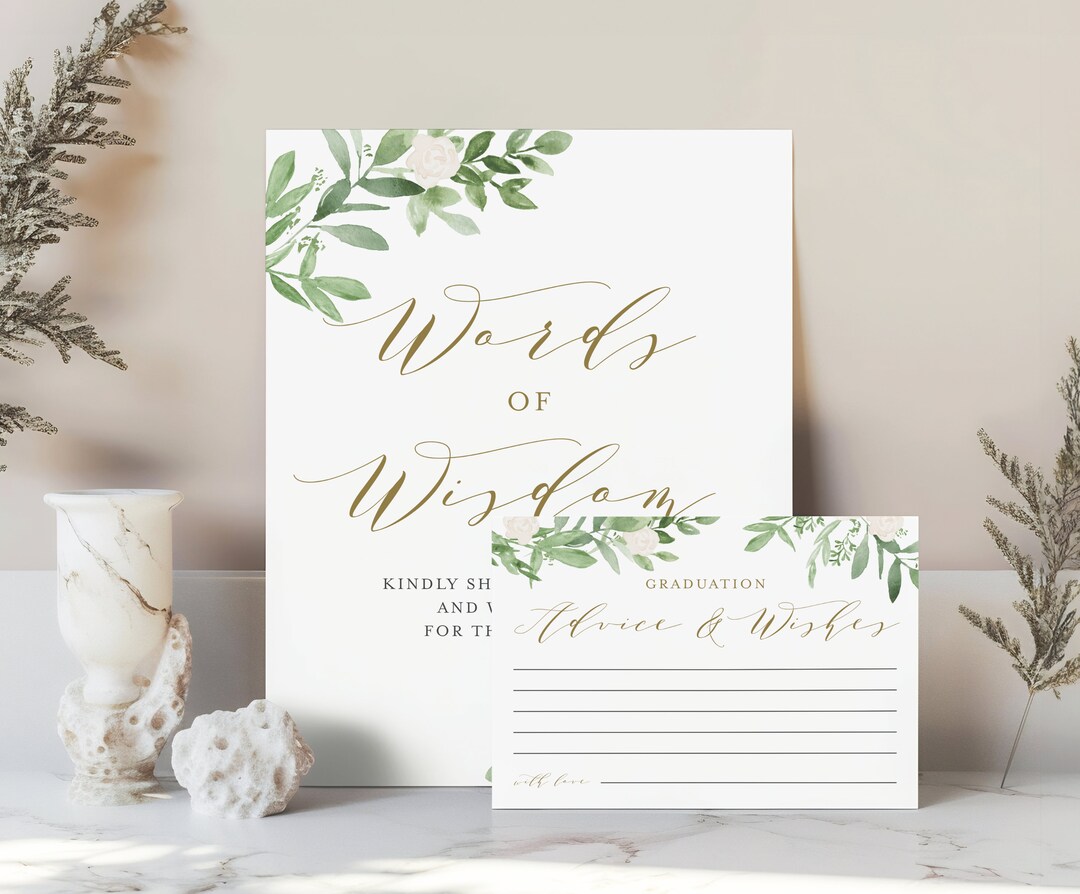 Printable Graduation Words of Wisdom Sign and Card White Flowers and