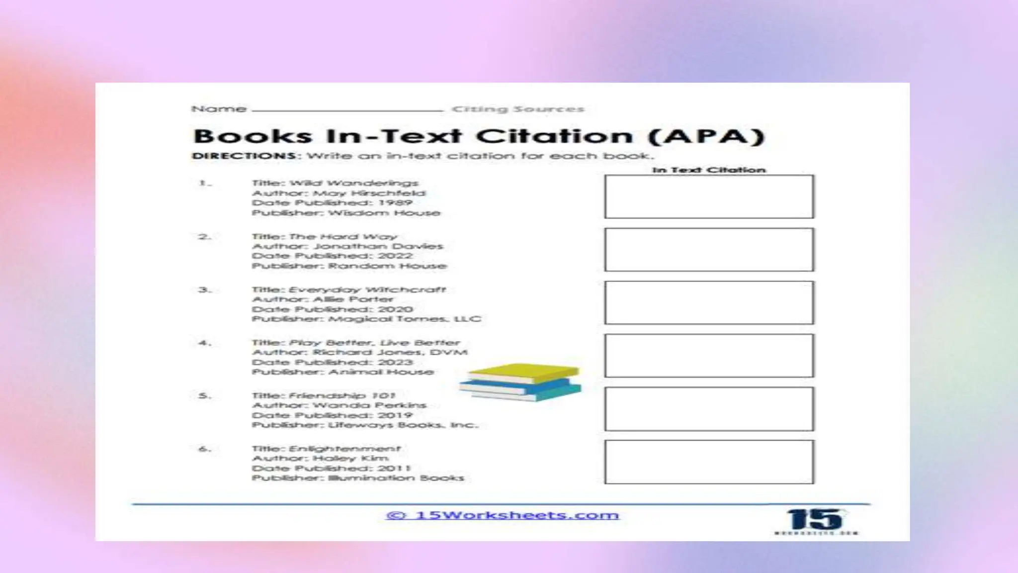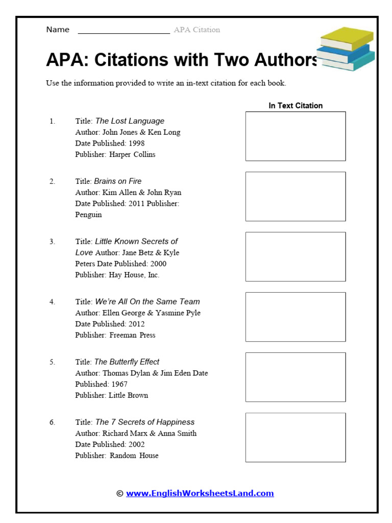 APA In Text Citation Worksheets by A Learning Tree TpT