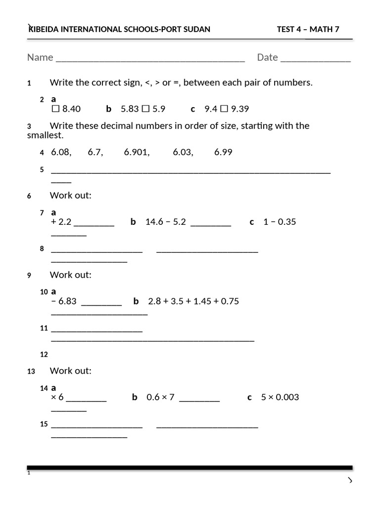 Comparing Decimals Worksheet Grade 4 Printable Word Searches