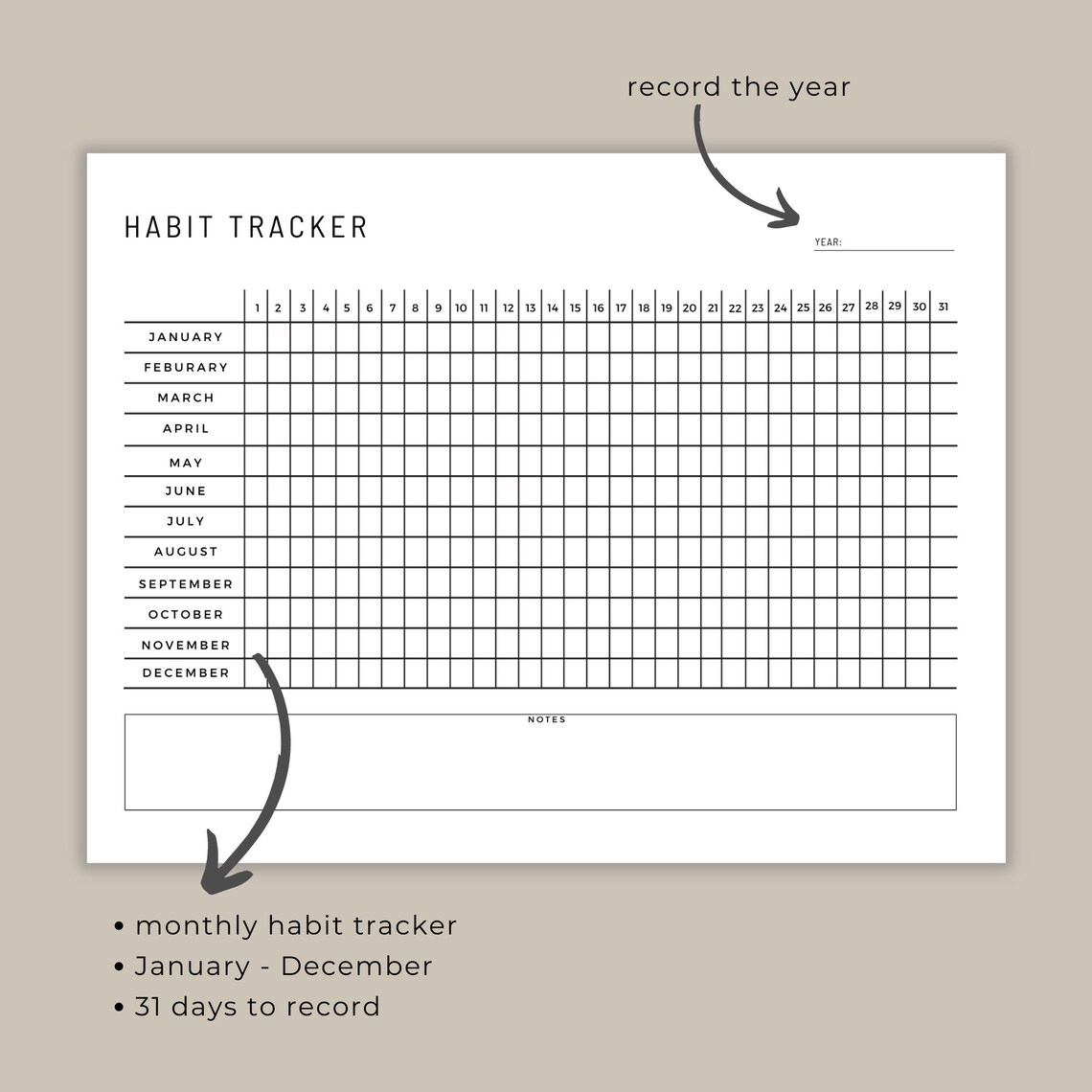 Habit Tracker Printable Yearly Habit Tracker Instant Download