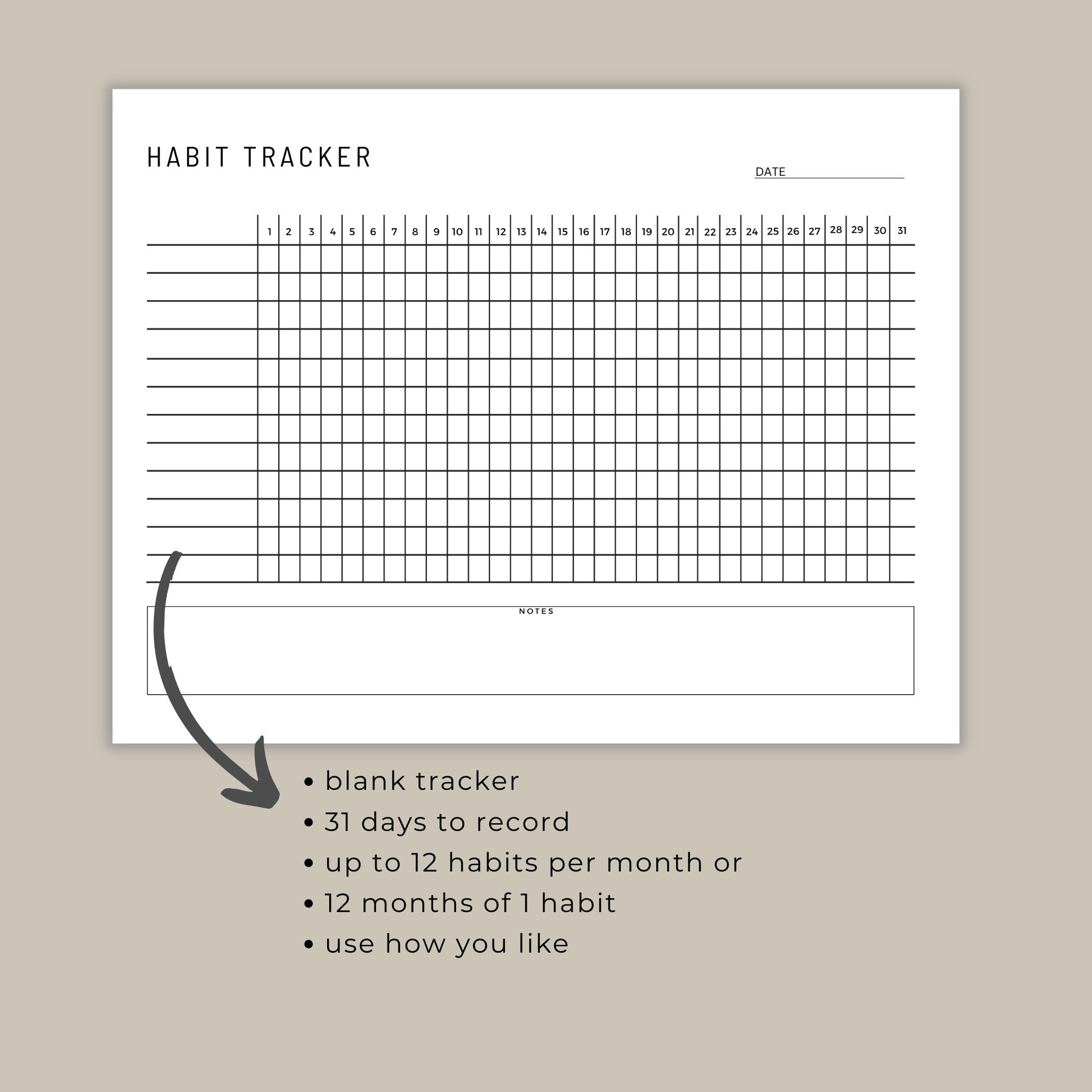 Habit Tracker Printable Yearly Habit Tracker Instant Download Goal