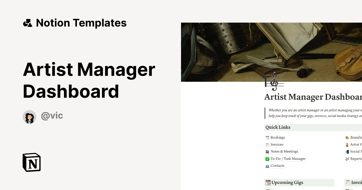 Artist Manager Dashboard Template Notion Marketplace