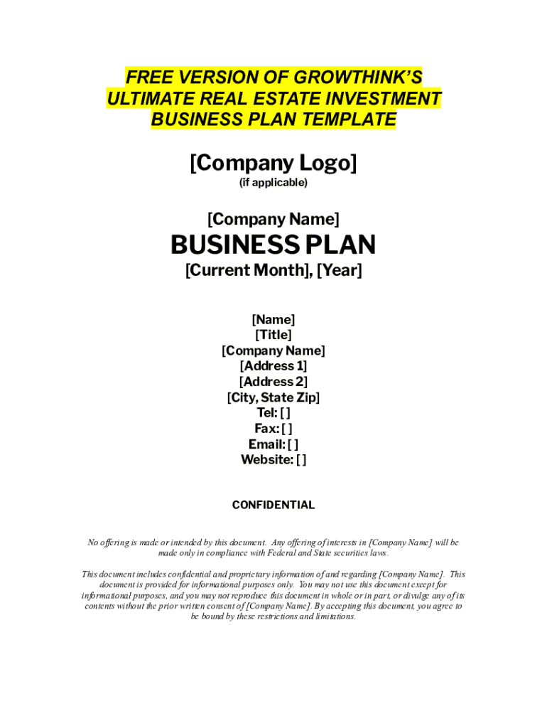 Free Real Estate Investment Business Plan Template